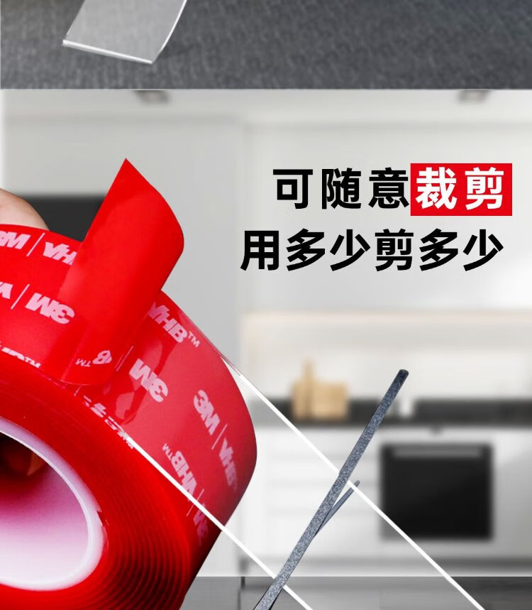 3M strong double-sided tape, high viscosity nail-free VHB tape, traceless, waterproof and high temperature resistant, 4910 transparent, 30mm wide and 3m long