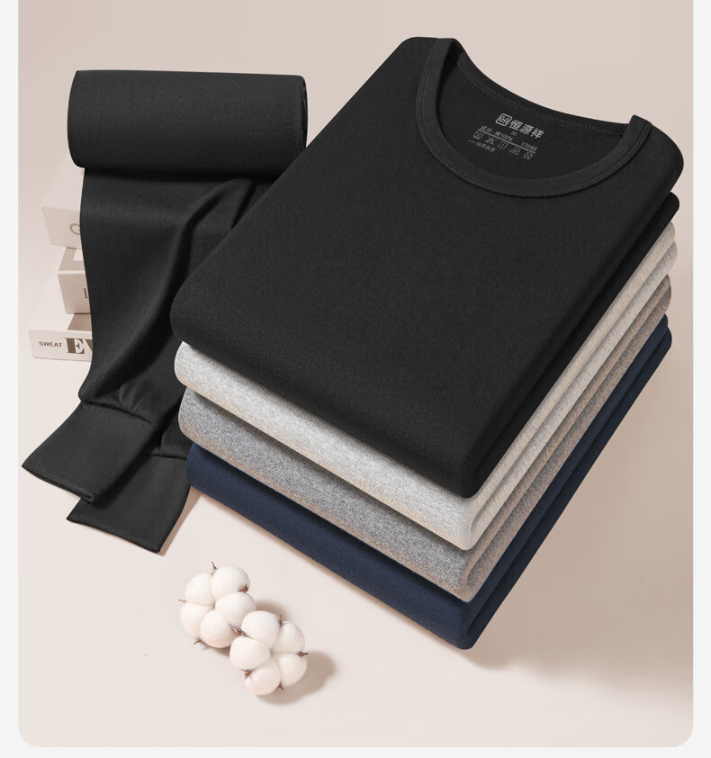 Hengyuanxiang 10A Antibacterial Autumn and Winter Men's Thermal Underwear Autumn Clothes Autumn Pants Set Antibacterial Thin Round Neck Warm Pants
