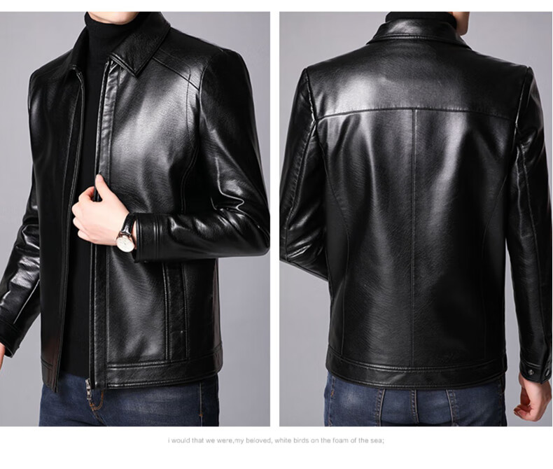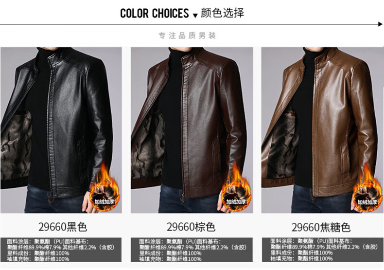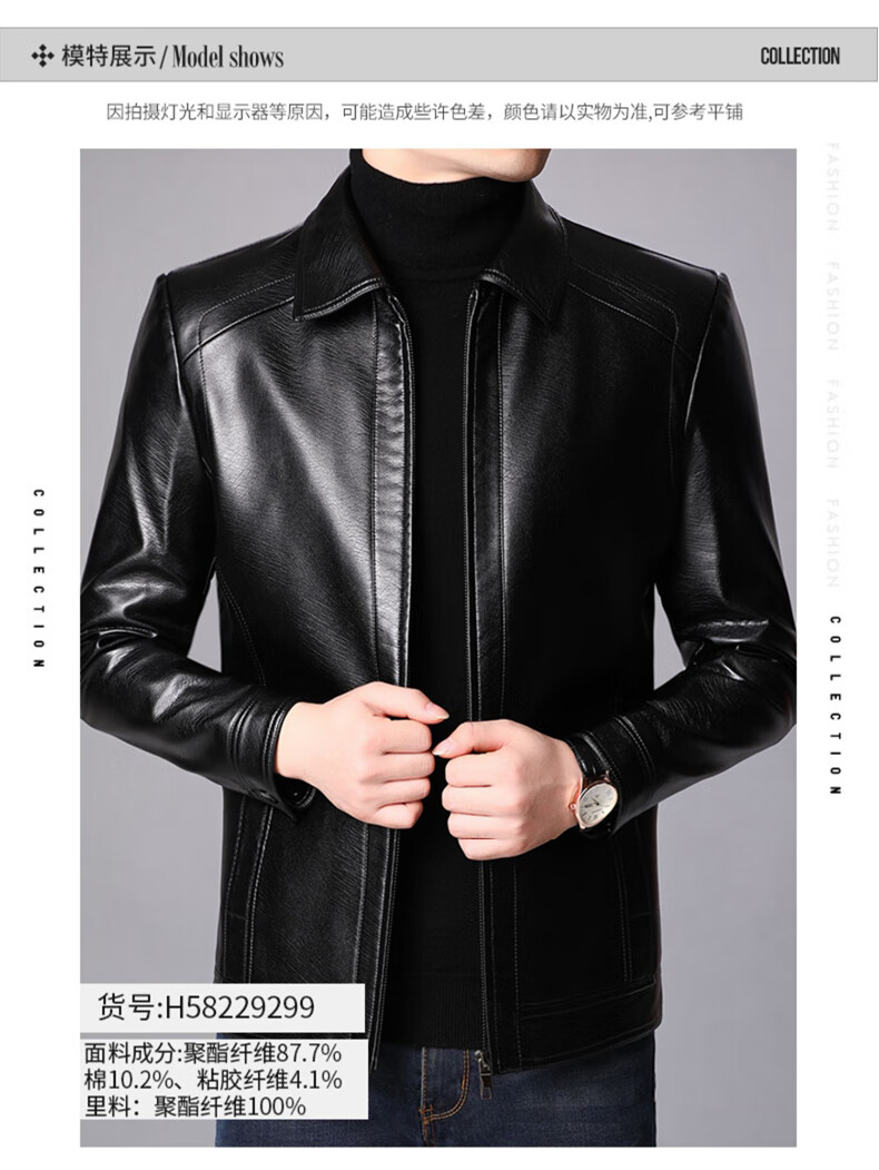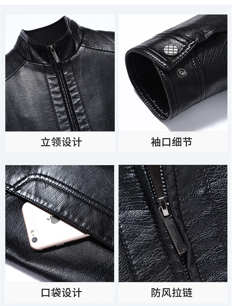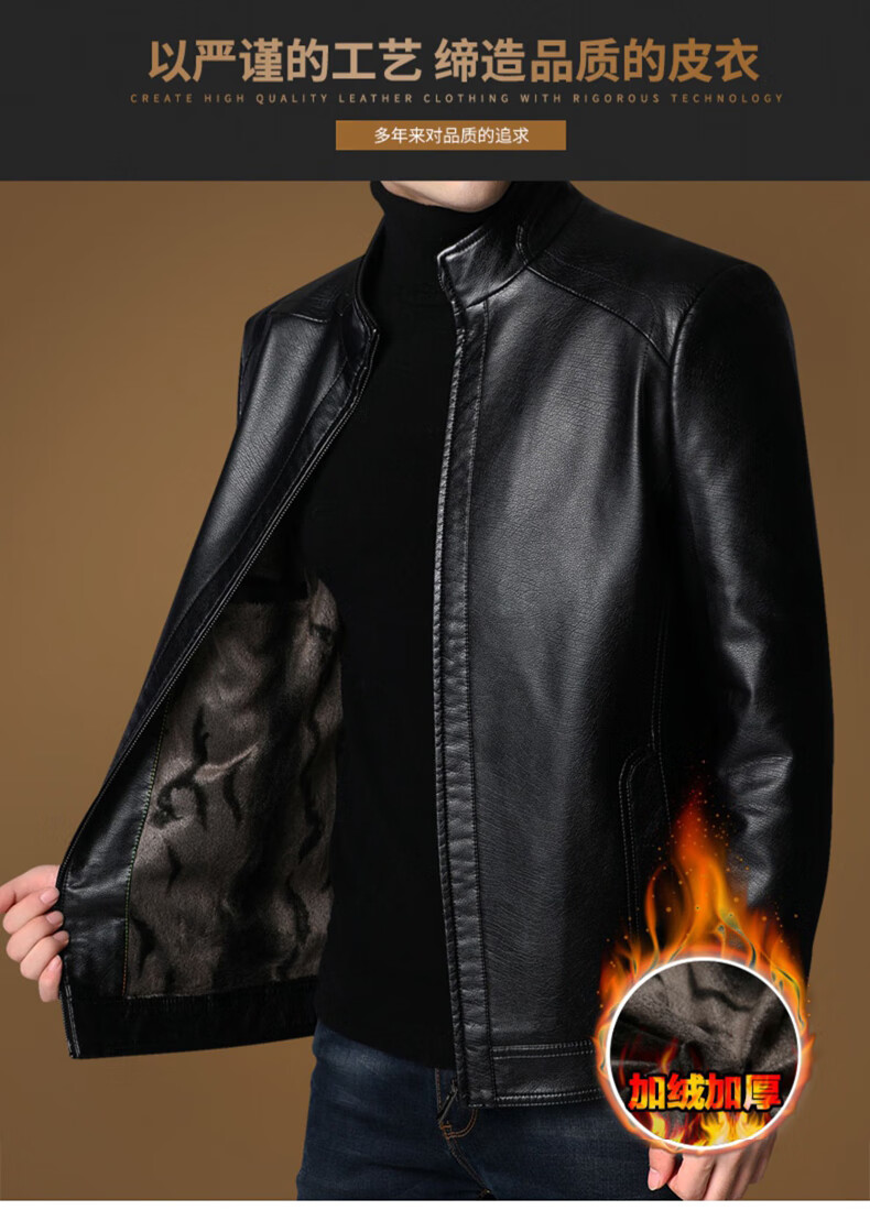 Hengyuanxiang leather jacket for men in autumn and winter, middle-aged men's velvet thickened stand-up collar jacket, warm leather jacket, middle-aged and elderly men's tops