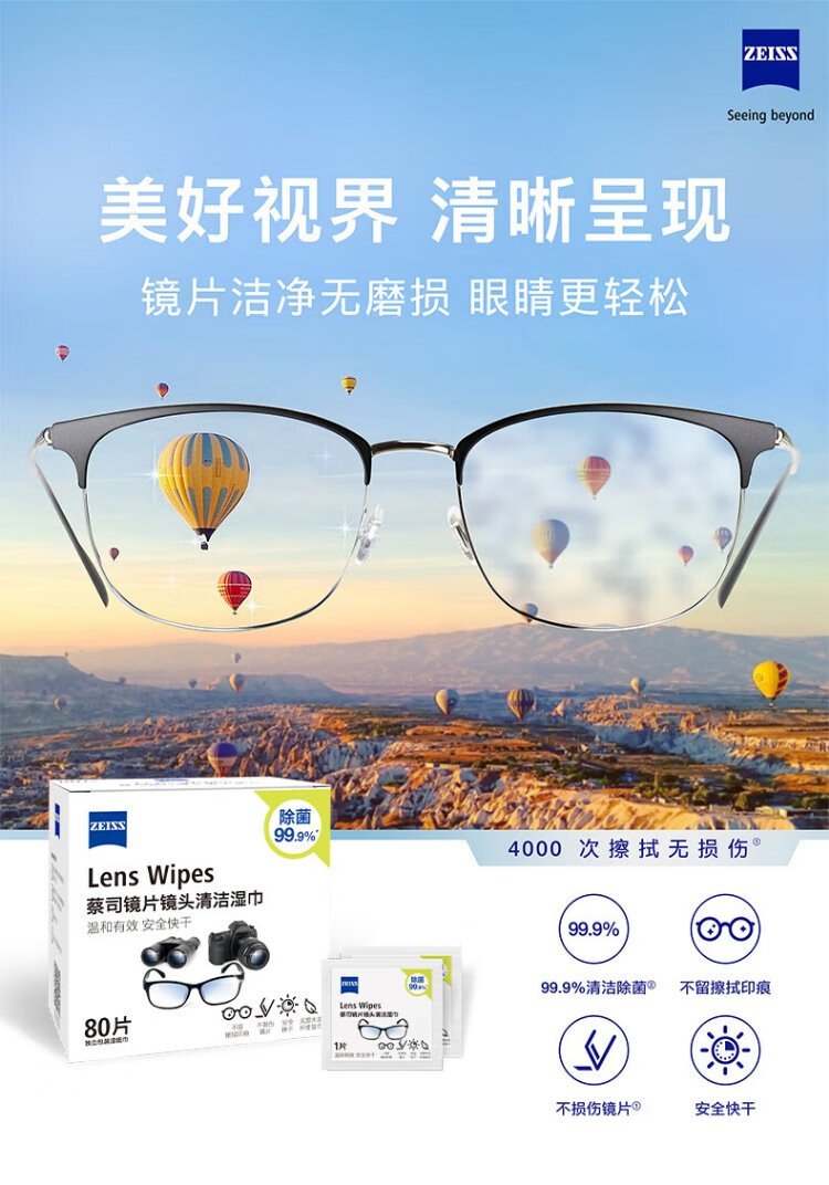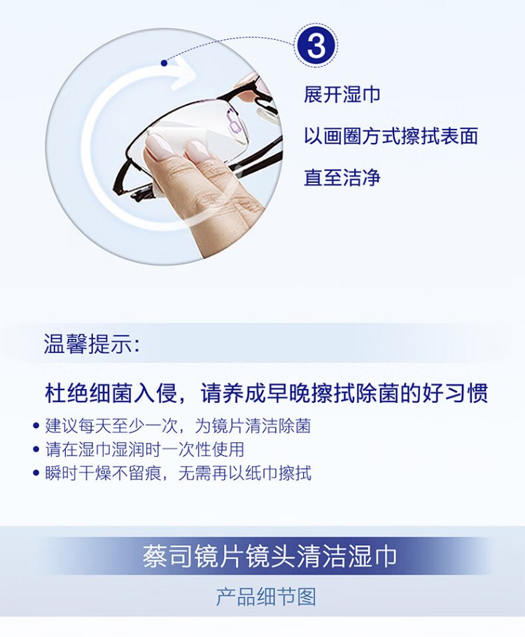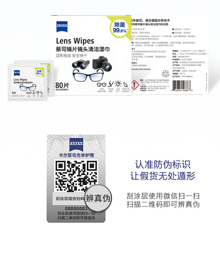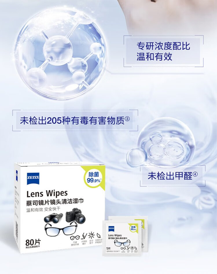 zeiss蔡司擦镜纸镜片擦拭湿巾 相机镜头清洁湿巾纸80片