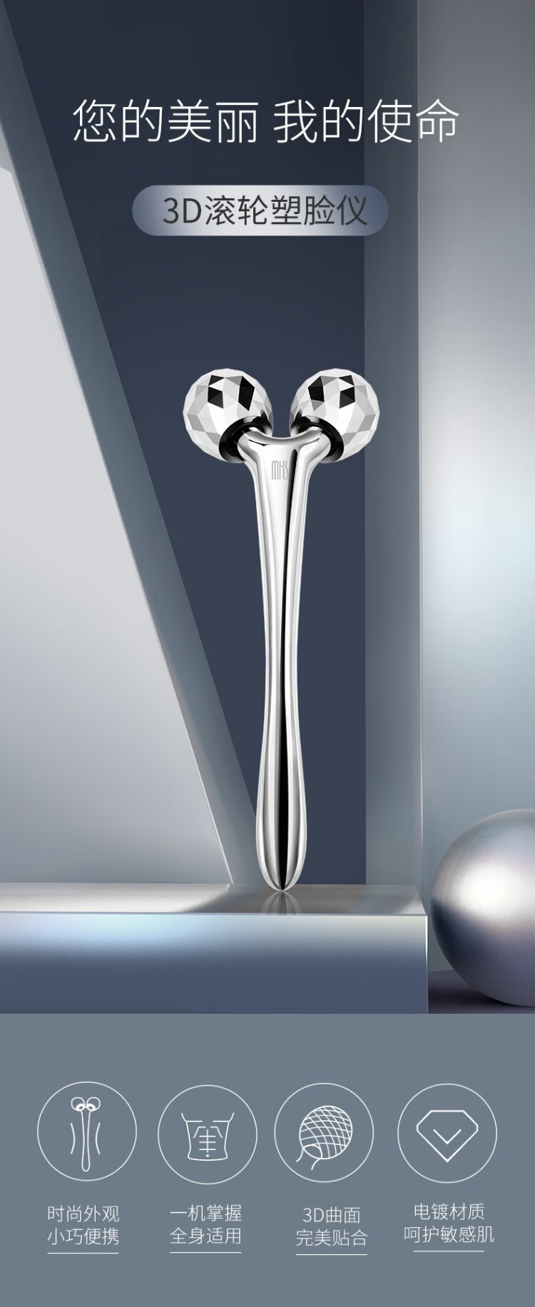 Mks 3D roller facial massager facial contour lifting and whole body manual tightening beauty instrument birthday gift for girls NV8510A
