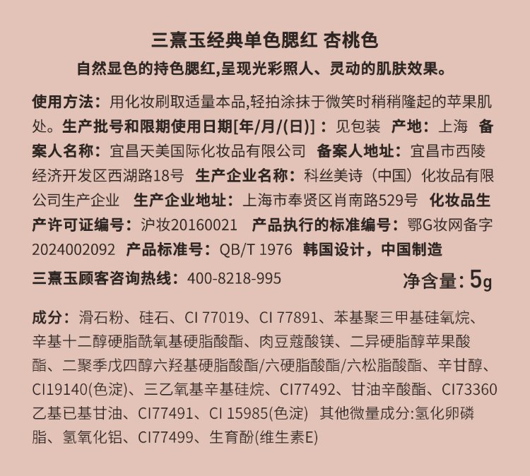 3CE single color blush apricot color PEACHSPLASH contour highlight expansion color birthday gift for girlfriend