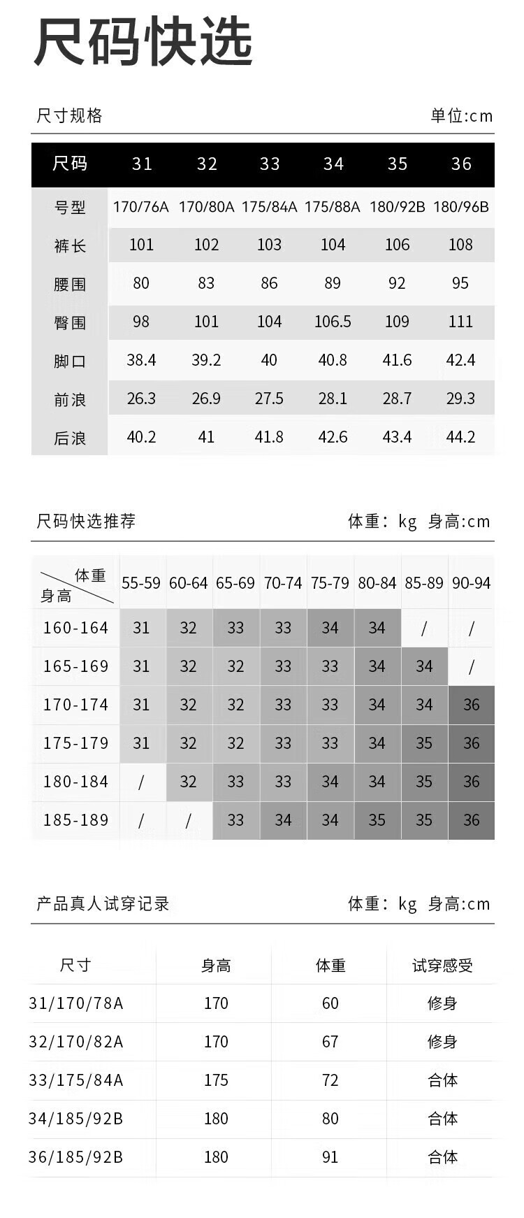 China (cm) 160-165/84-86 165-170 / 88-90 167-172 / 92-96 168-173 / 98-102 170-176 / 106-110