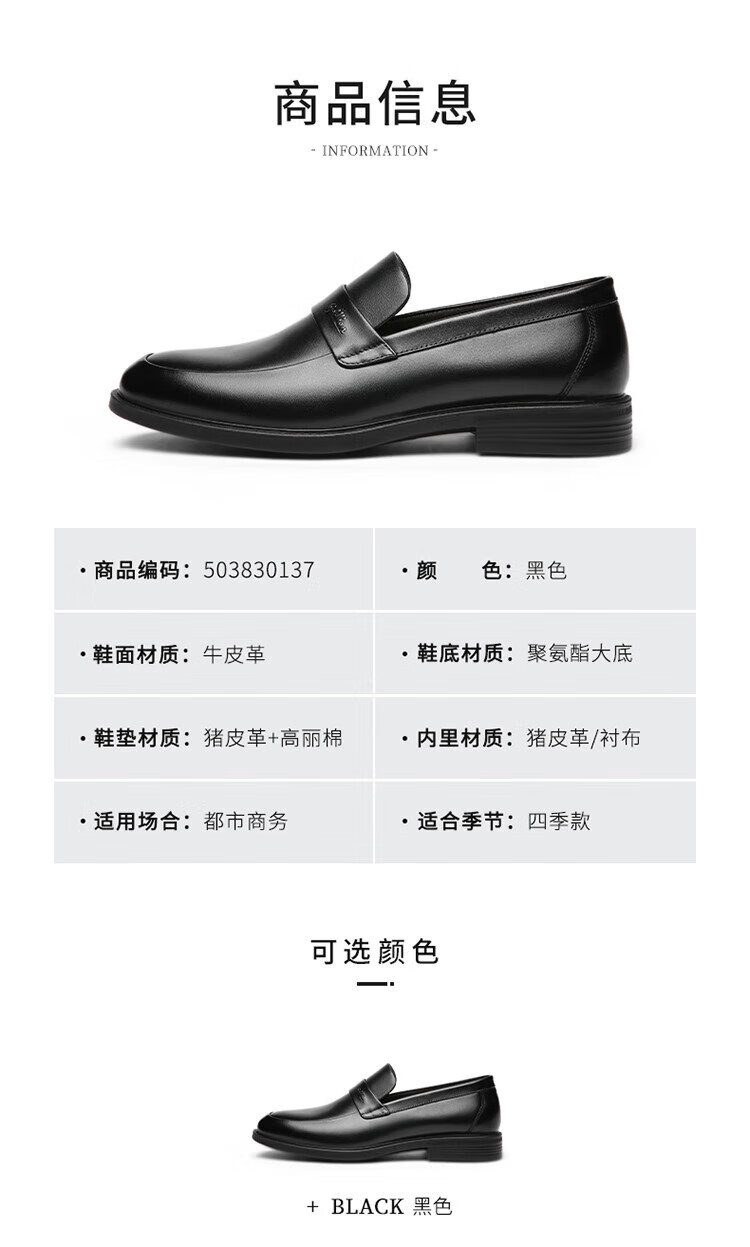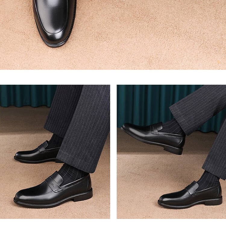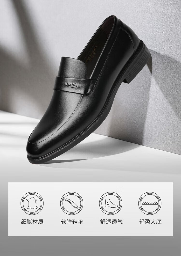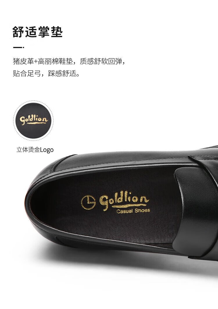 Goldlion Men's Shoes Business Casual Formal Shoes Autumn Comfortable Lightweight Fashionable Leather Shoes 50383013701A-Black-40 Size