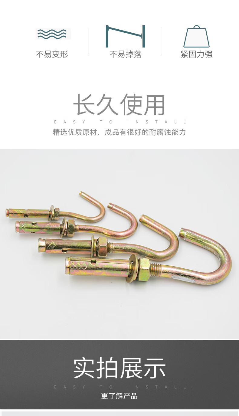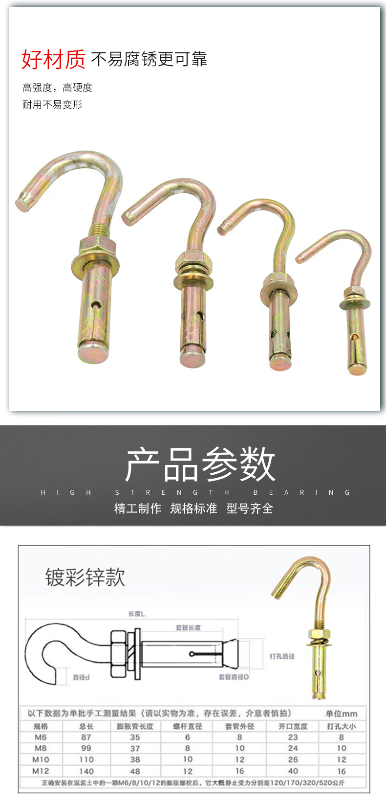 Hesdig JG-18 Colored zinc expansion hook Expansion hook Expansion screw hook Colored zinc expansion hook Screw hook Expansion bolt hook M8 (20 pieces) Beijing warehouse flash delivery