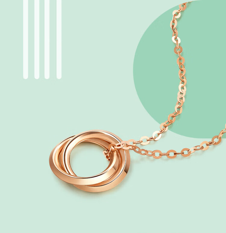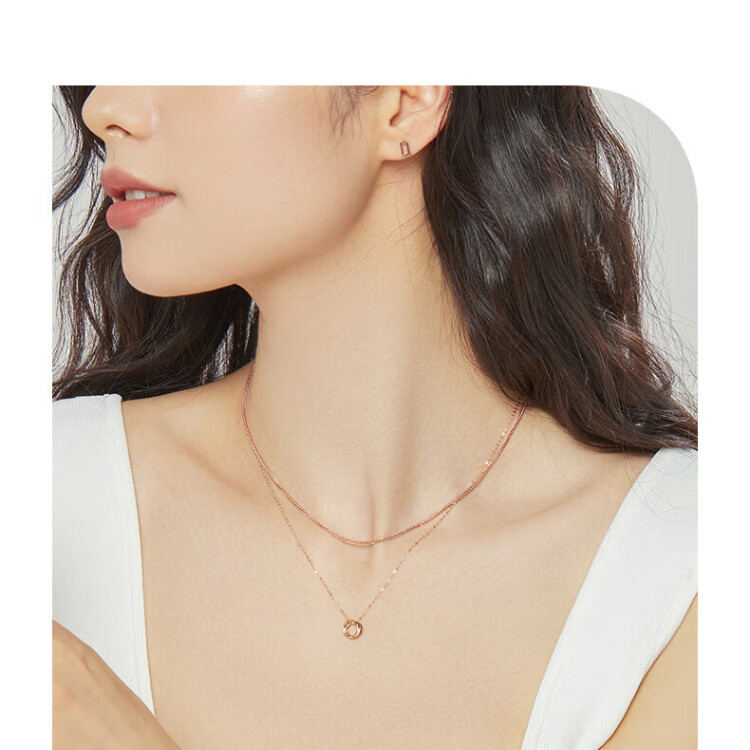 Chow Sang Sang Wing series double ring 18K rose gold necklace interlocking pendant 91873U47 cm