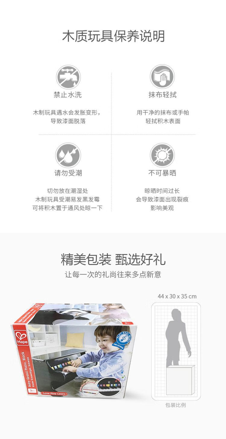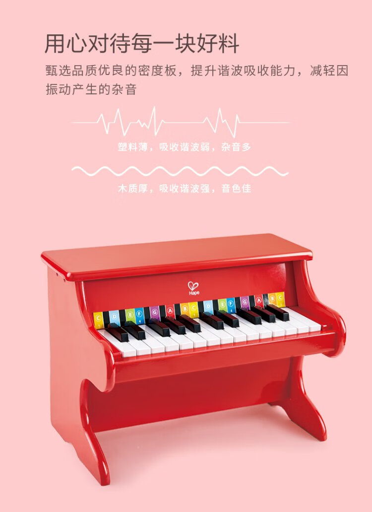 Hape (Germany) piano toy boys and girls musical instrument enlightenment wooden 25-key piano red holiday gift E8466