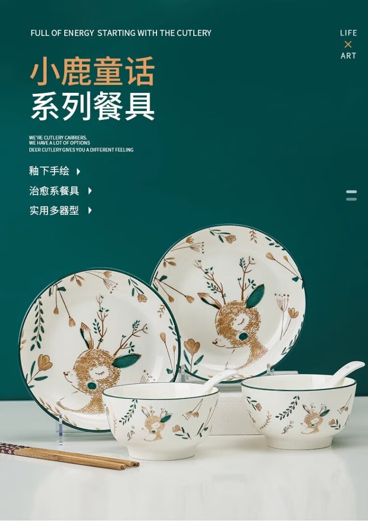 Wanxiang Xiaolu Japanese-style underglaze bowl and dish set household ceramic tableware bowl chopsticks noodle bowl soup bowl plate chopsticks combination bowl