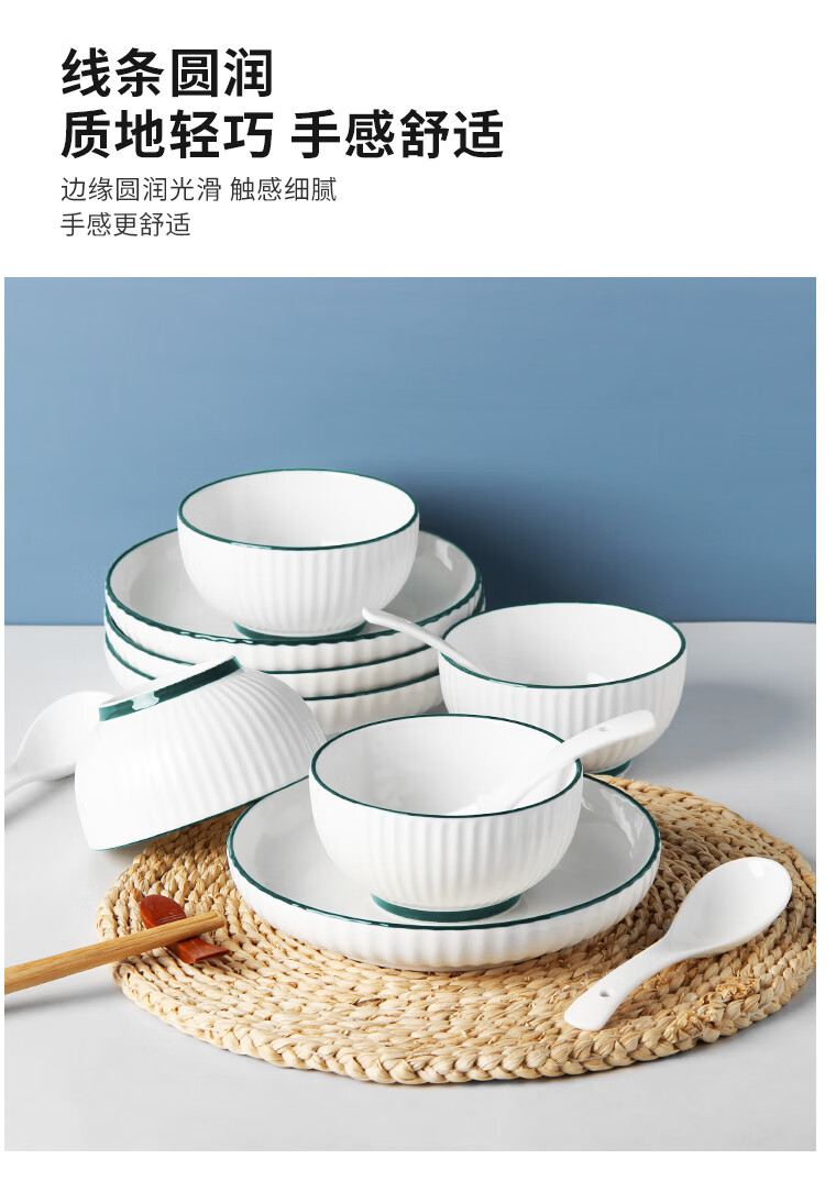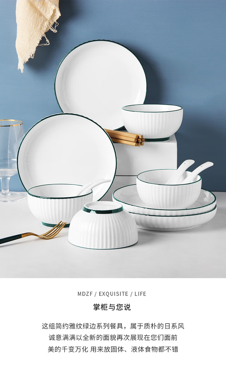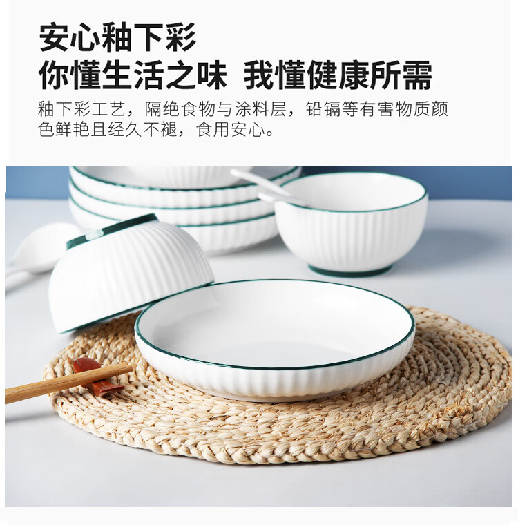 Wanxiang European light luxury ceramic tableware and dishes set underglaze color bowl rice bowl dish plate bowl chopsticks bowl set 18 pieces