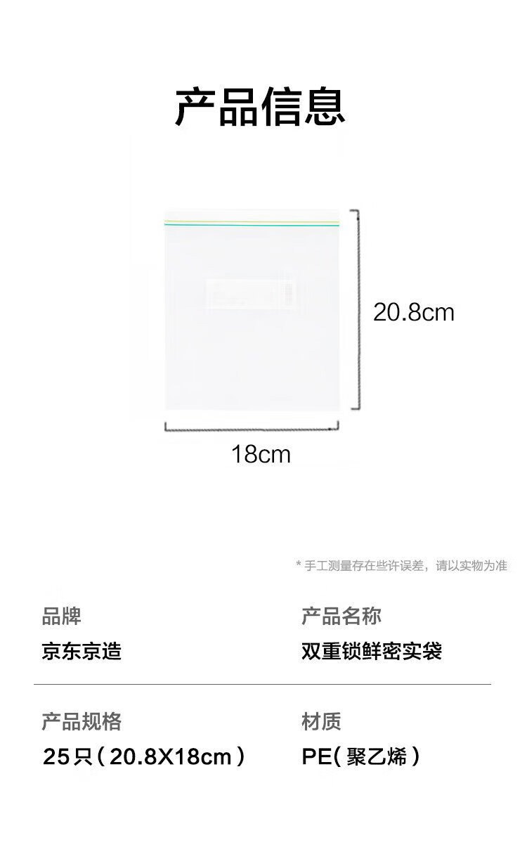 Made in Tokyo, sealed bags, food-grade fresh-keeping bags, barbecue and camping medium-sized double-chain dense bags 18*20.8cm, 25 pieces