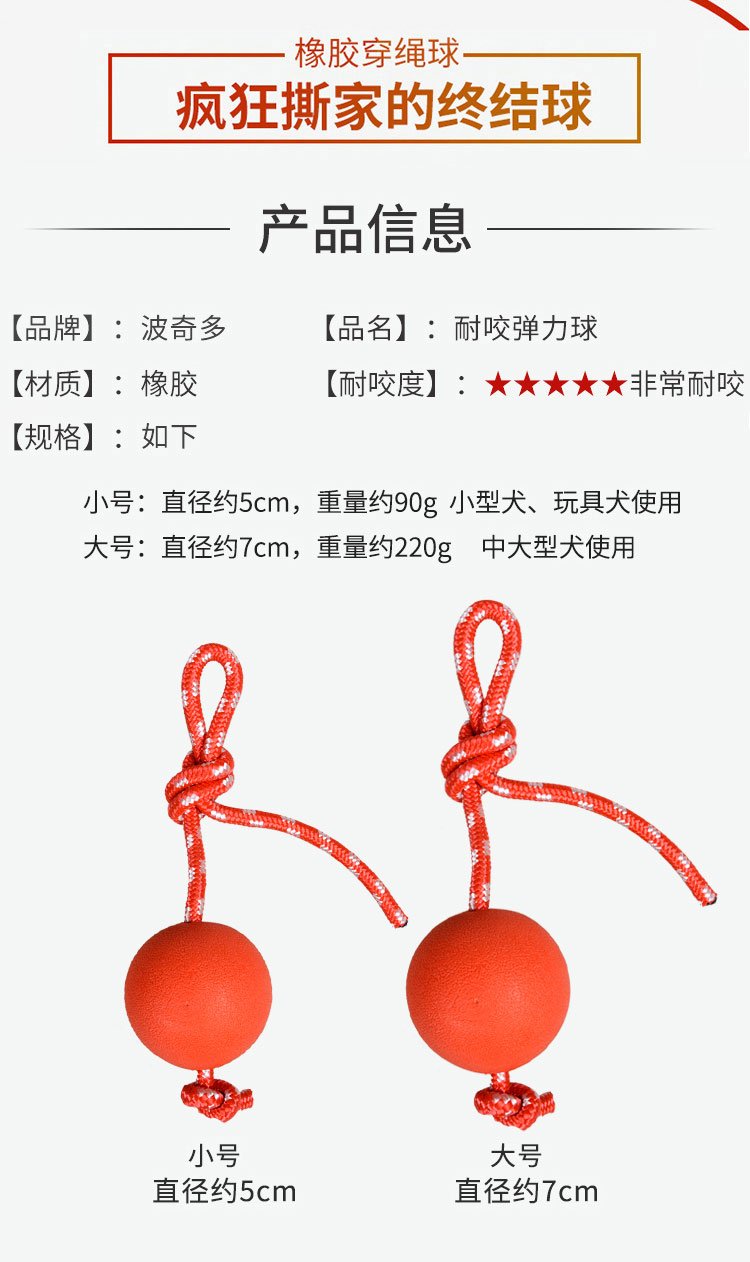 Pochido large elastic ball with rope, dog toy that is resistant to chewing and teeth grinding, self-pleasure and boredom relief artifact, large dog pet ball