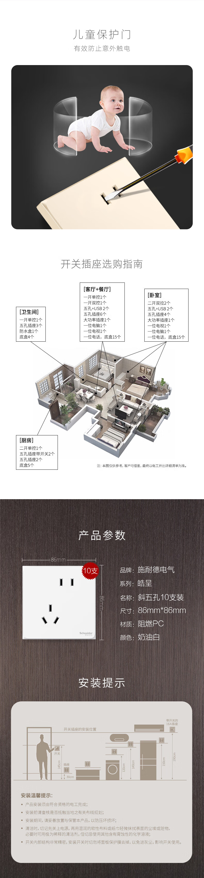 Schneider Electric staggered five-hole socket set of ten 86-type wall switch socket panel set Haocheng cream white