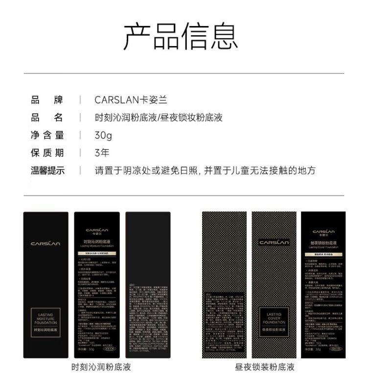 Carslan little cat liquid foundation concealer, long-lasting moisturizing, brightening, non-removing makeup, dry skin 01# jade porcelain color 30g birthday gift for women