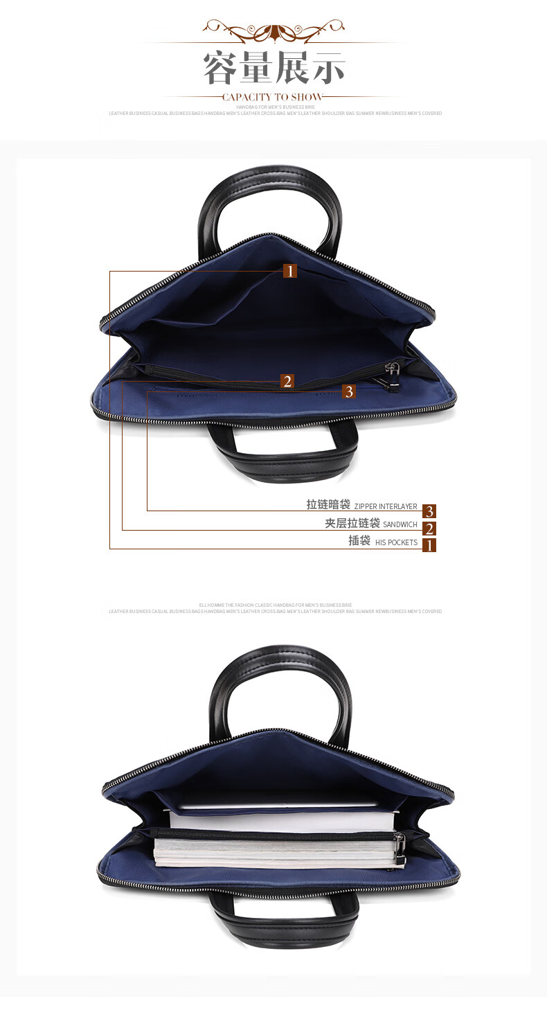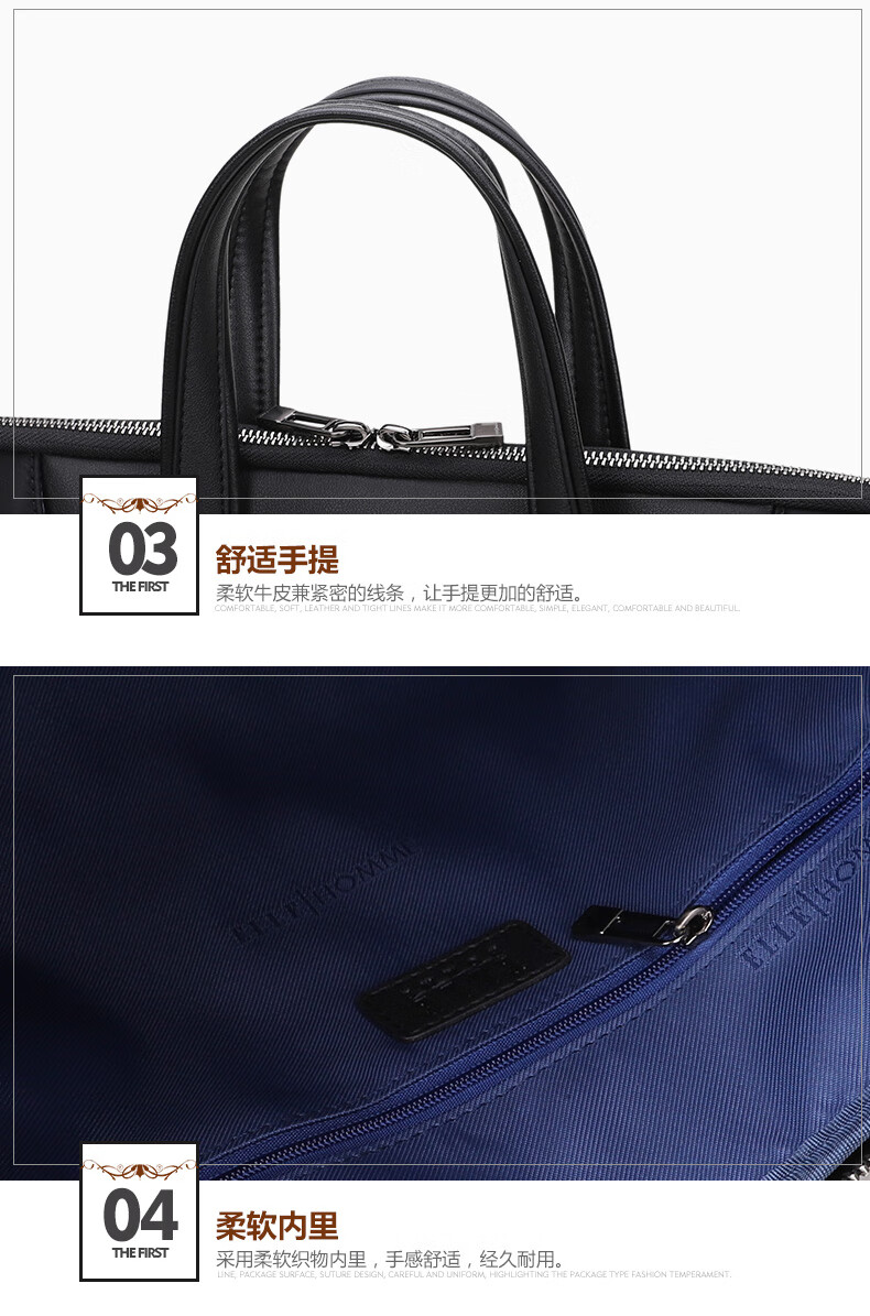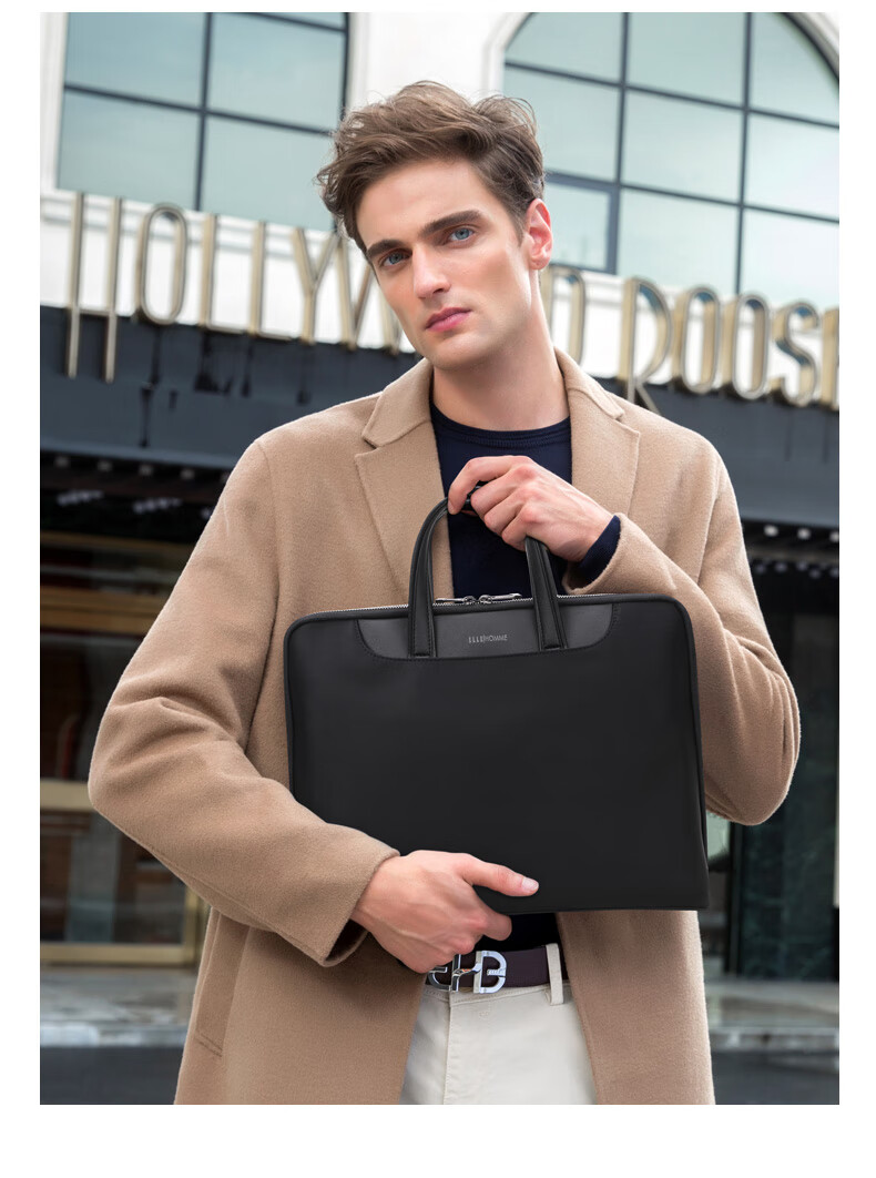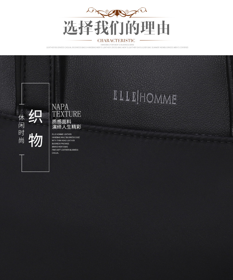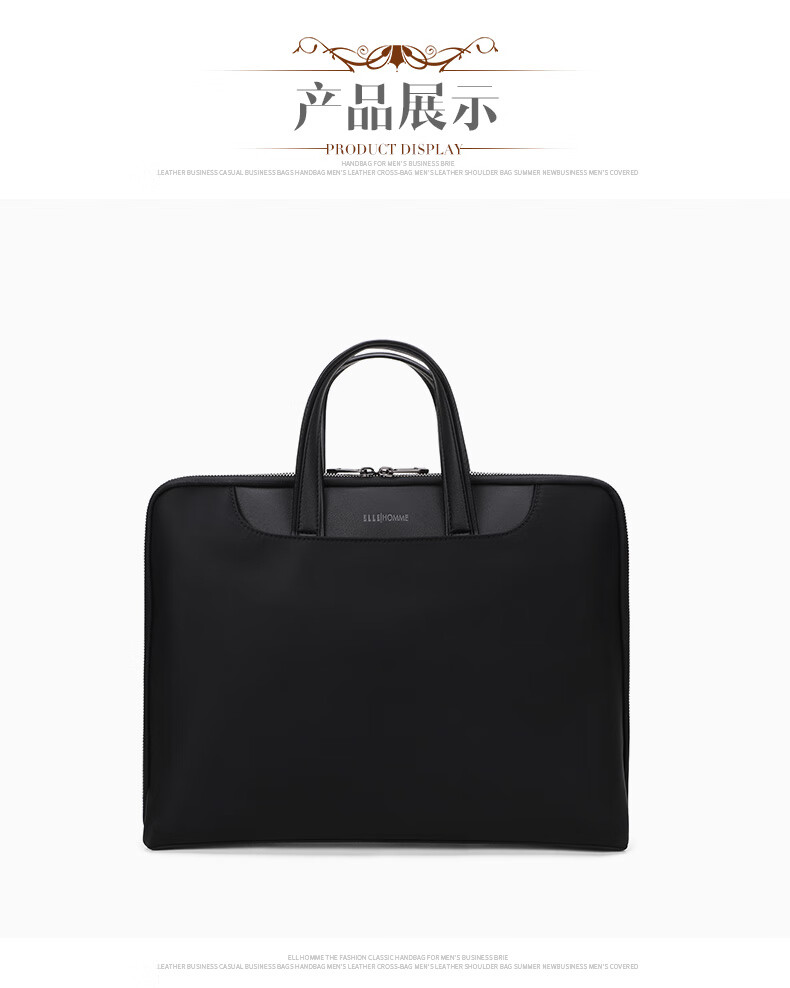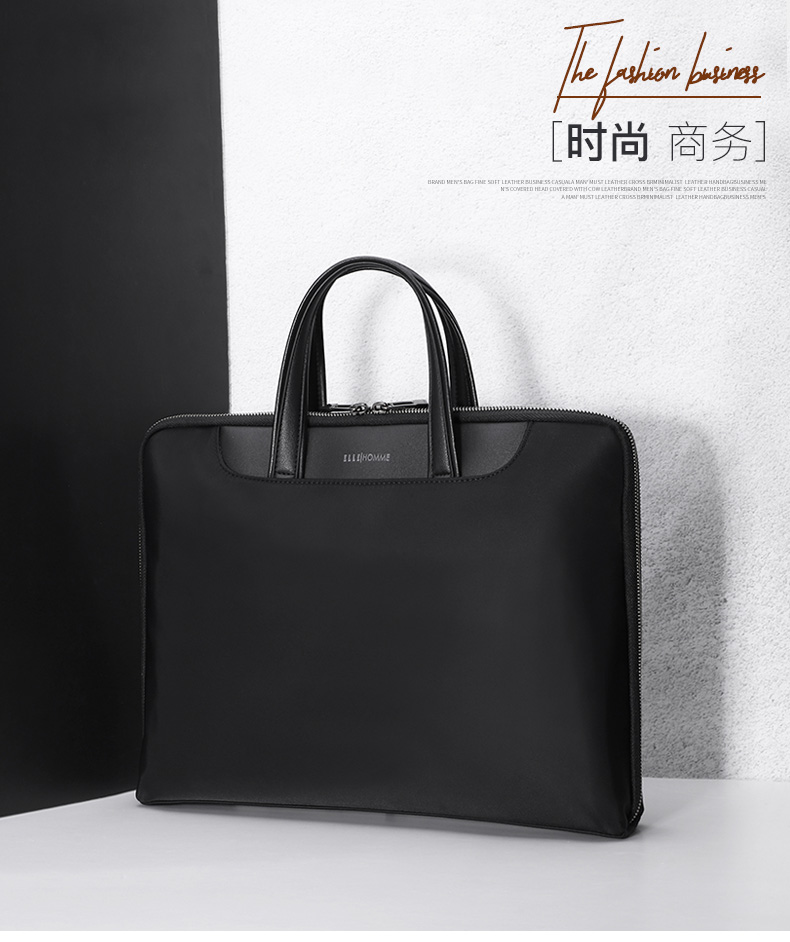 ELLE HOMME Business Men's Briefcase Nylon Composite Canvas Handbag Casual Computer Bag Men's Bag 03510 Black
