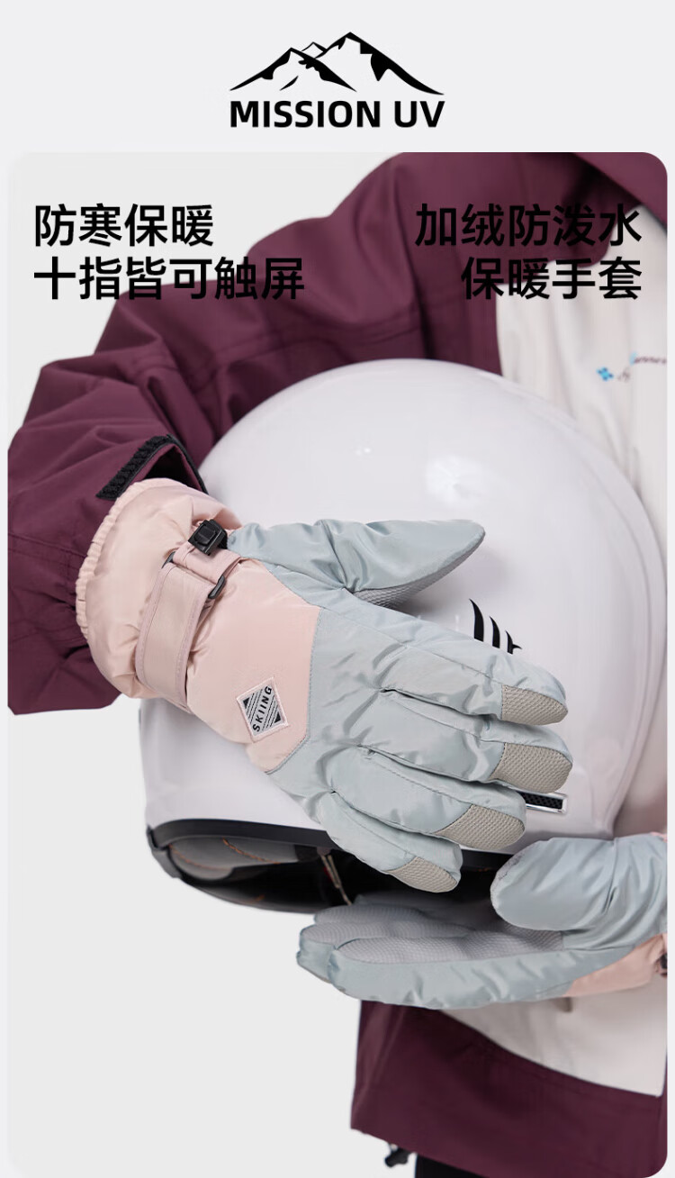 MISSION UV warm gloves for women in autumn and winter thickened and velvet outdoor skiing and riding electric bicycle windproof and cold-proof touch screen gloves