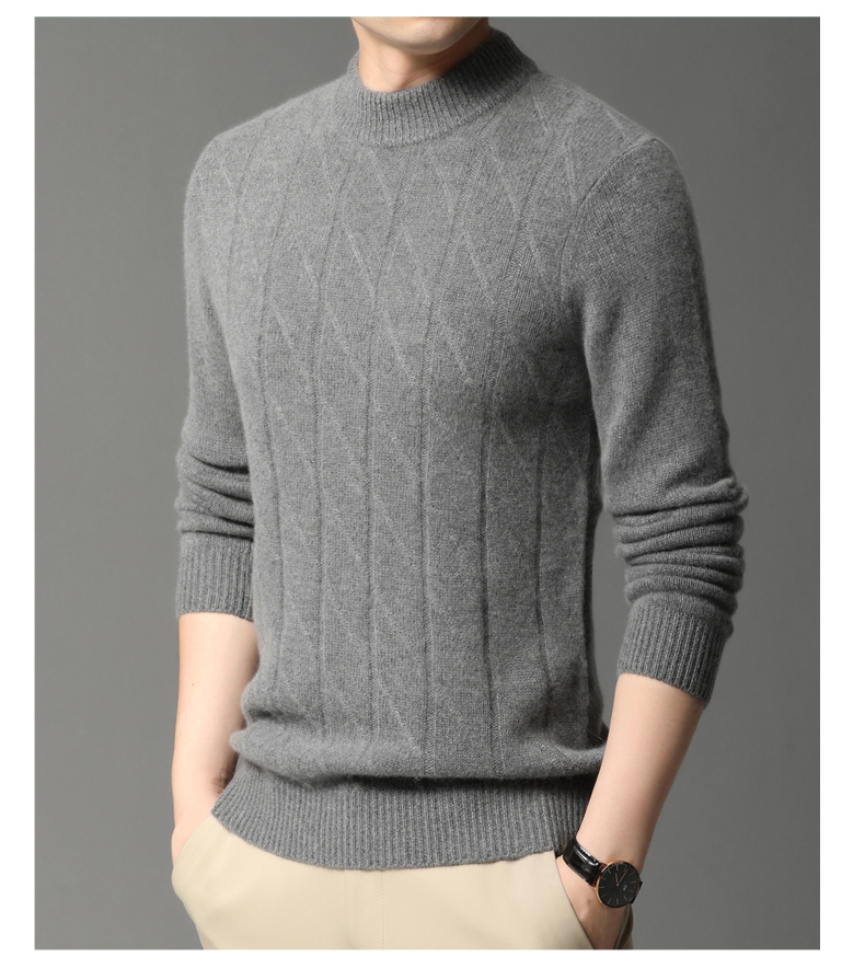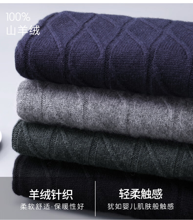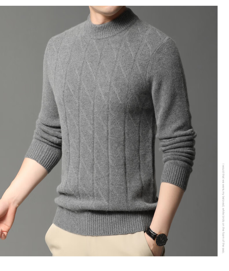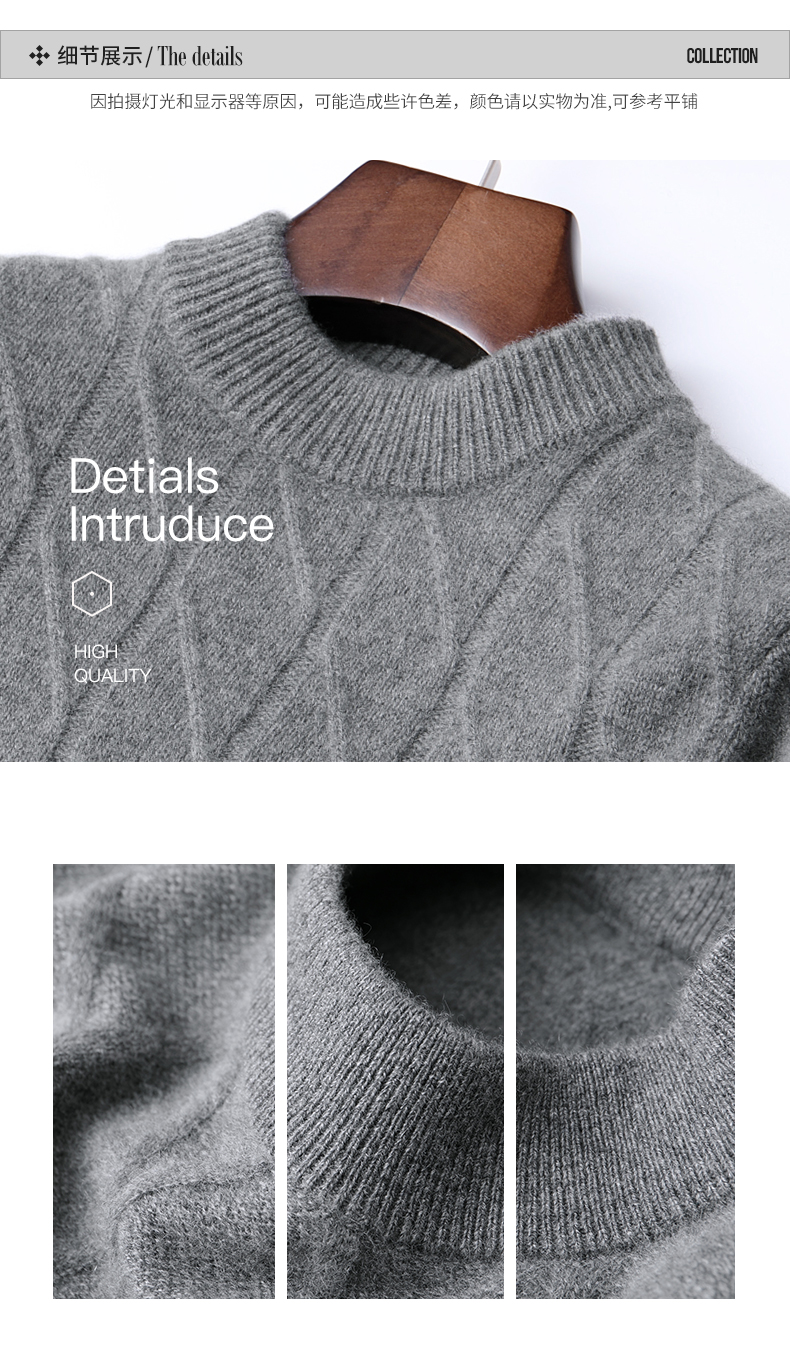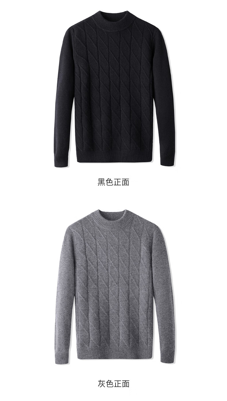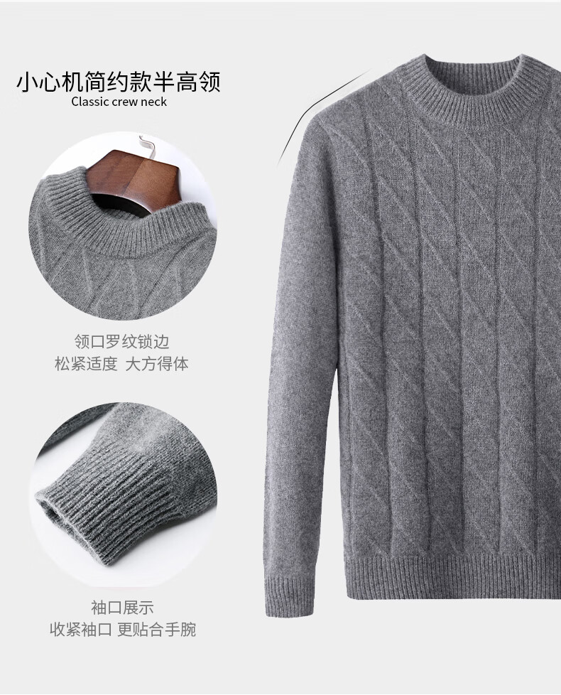 Hengyuanxiang Cashmere Sweater Men's Autumn and Winter Thickened 100% Pure Cashmere Sweater Men's Solid Color Business Casual Thick Bottoming Shirt Men's Warm Knitted Sweater YKR520479 Gray 180