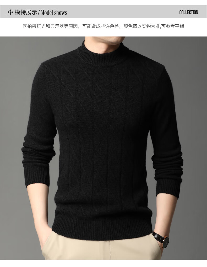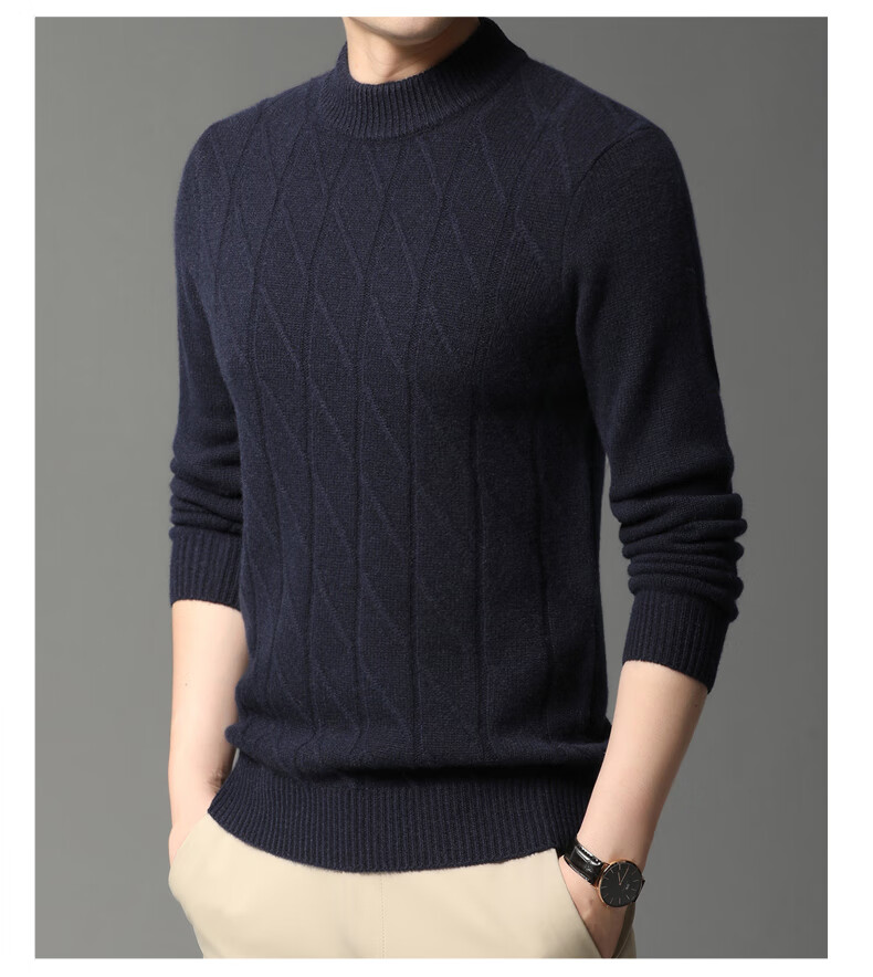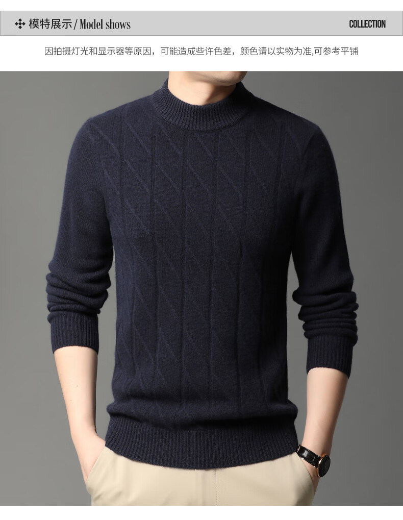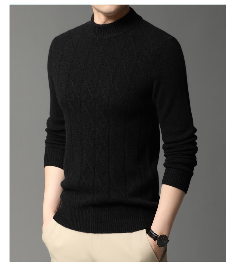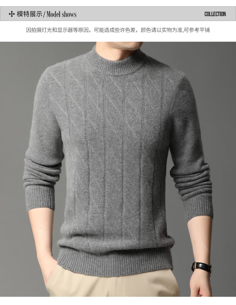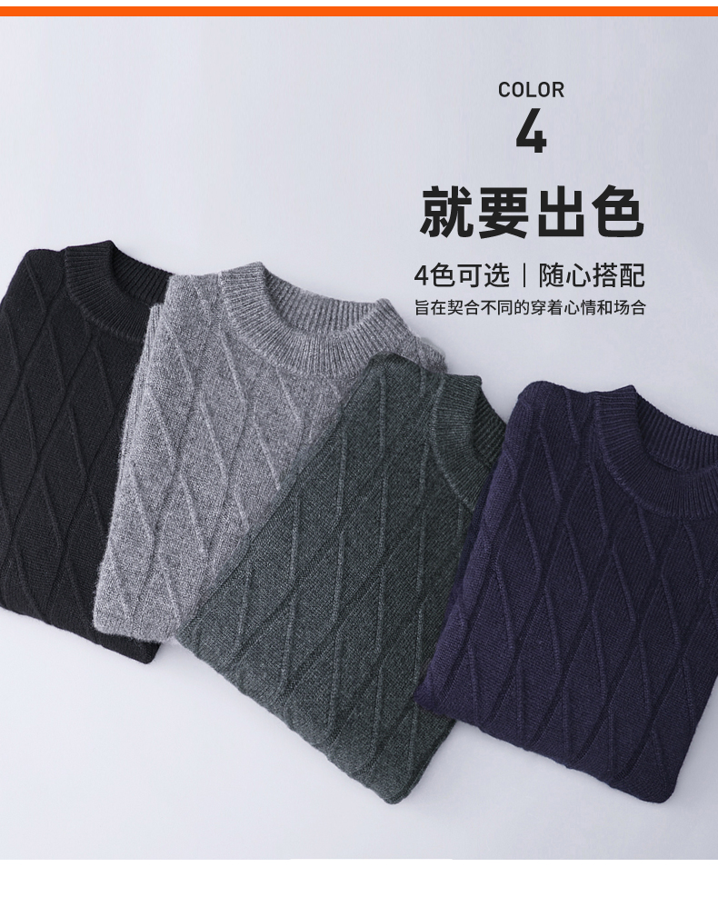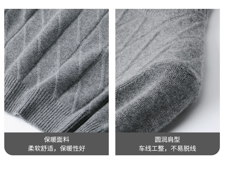 Hengyuanxiang Cashmere Sweater Men's Autumn and Winter Thickened 100% Pure Cashmere Sweater Men's Solid Color Business Casual Thick Bottoming Shirt Men's Warm Knitted Sweater YKR520479 Gray 180