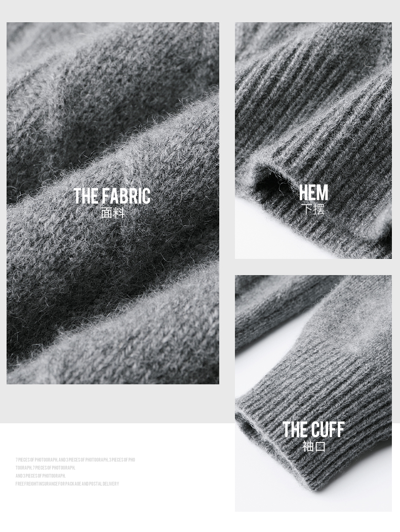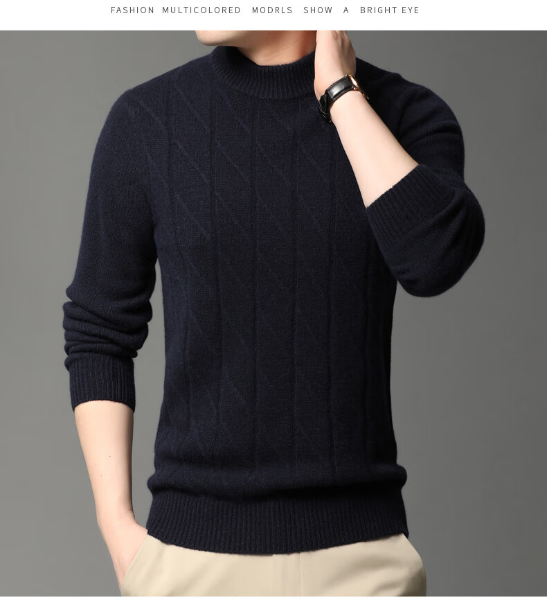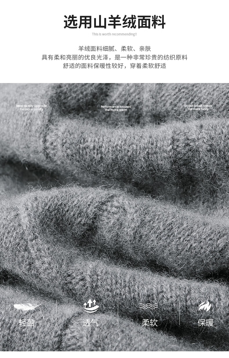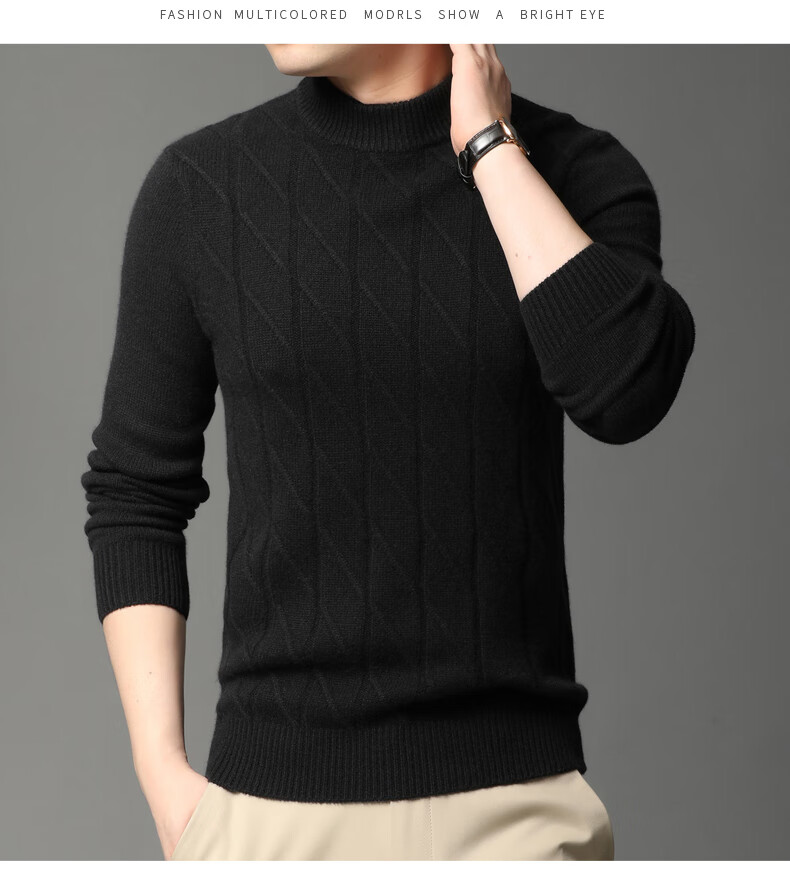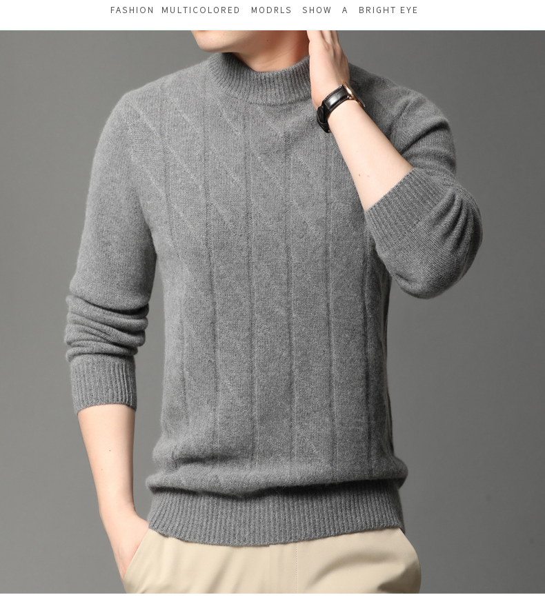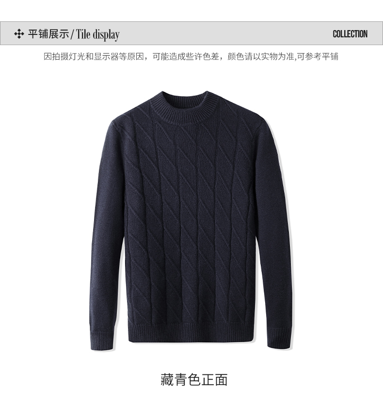 Hengyuanxiang Cashmere Sweater Men's Autumn and Winter Thickened 100% Pure Cashmere Sweater Men's Solid Color Business Casual Thick Bottoming Shirt Men's Warm Knitted Sweater YKR520479 Gray 180
