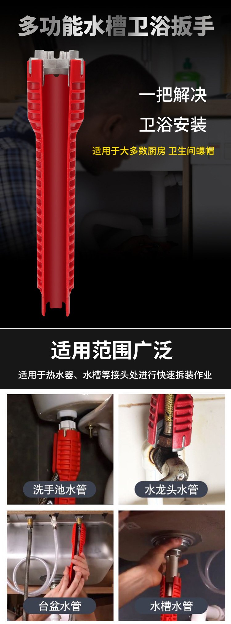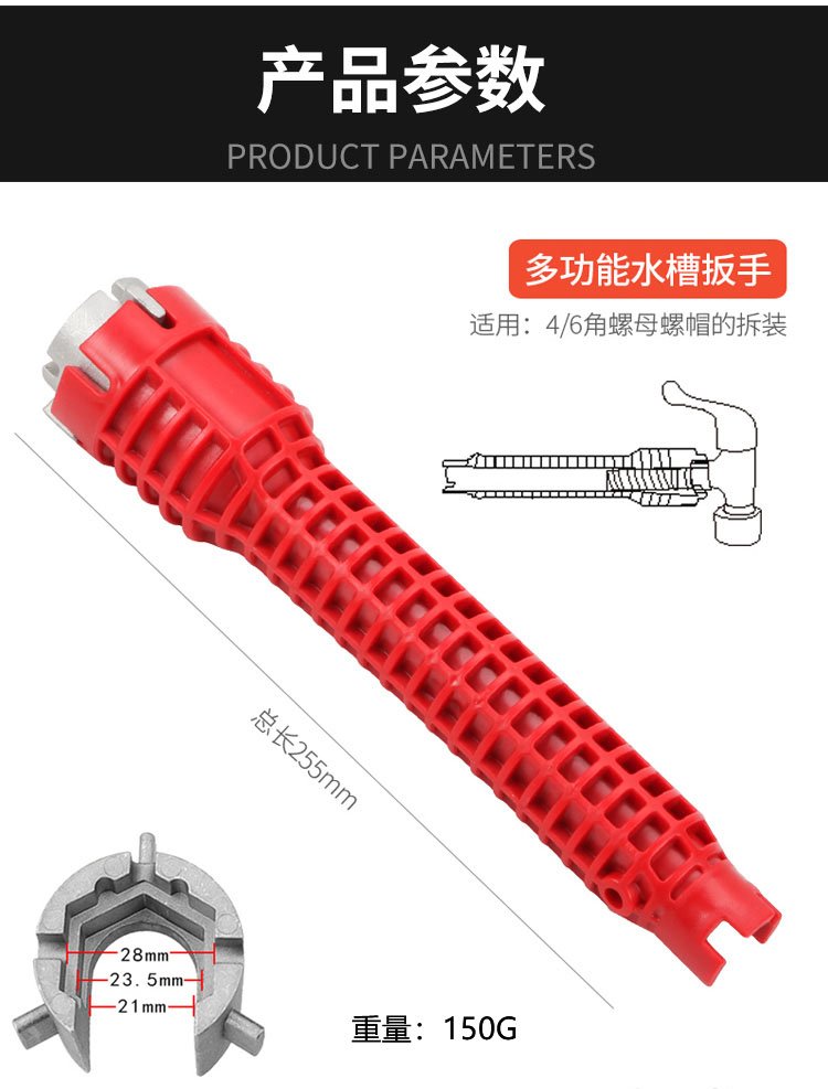 Kraftwell multifunctional bathroom sink wrench pipe nut installation artifact water pipe removal tool 250mm WR3113