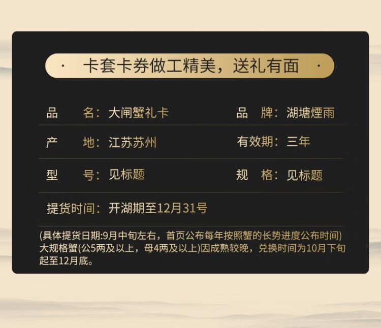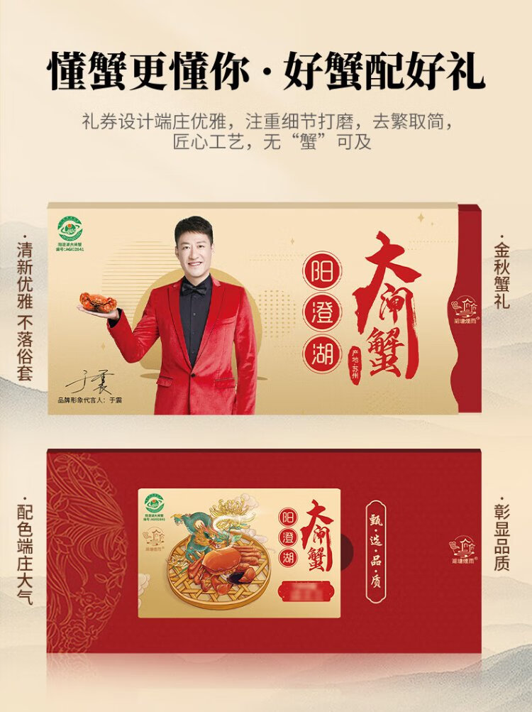 Gift Certificates Hutang Yanyu Yangcheng Lake Hairy Crab Gift Card Crab Card Gift Voucher Pickup Card Male 4.5 Female 3.5 Liang 4 Pairs Gift Box for Elder Leaders