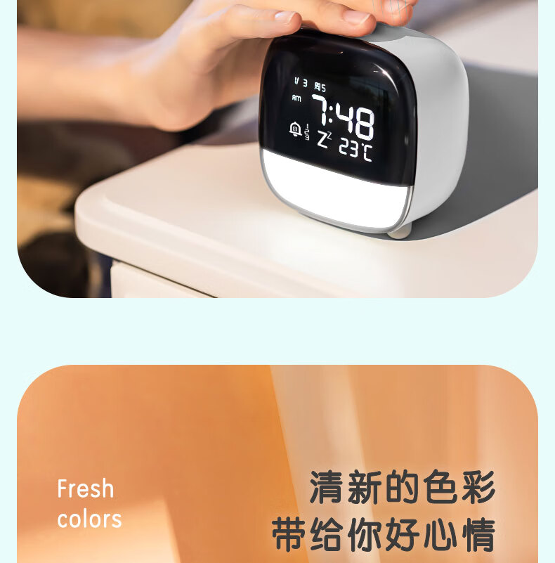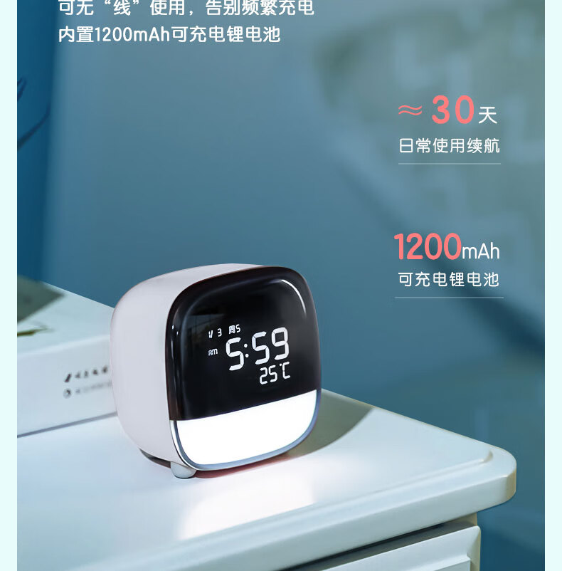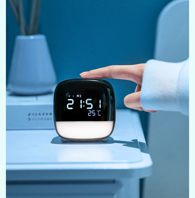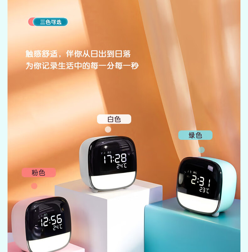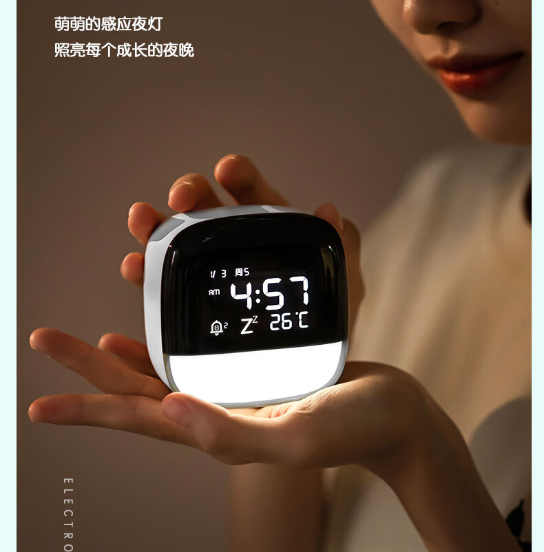 Deli multifunctional LCD cute pet smart alarm clock 1200mAh student night light bedside clock clock children's bedroom clock time manager gift white 8852 school season