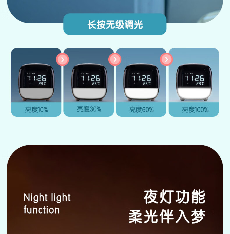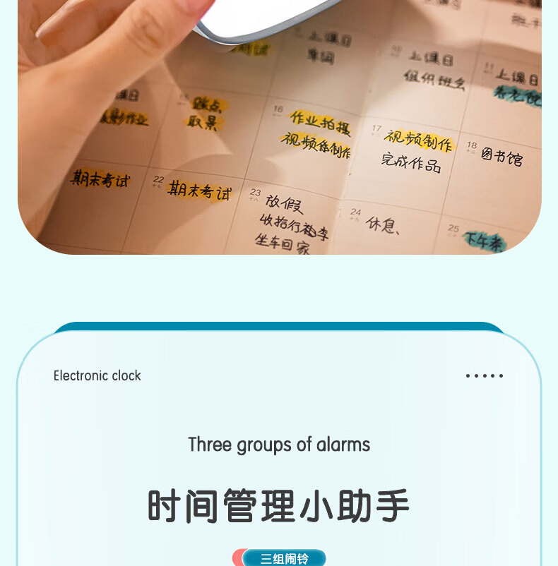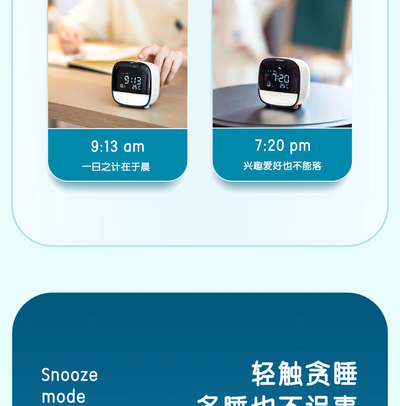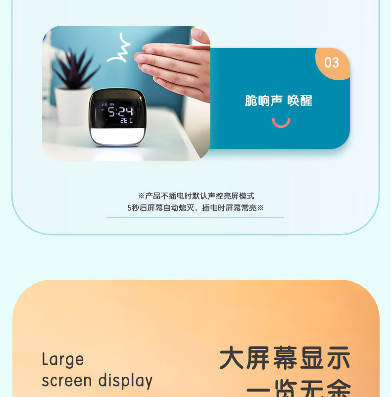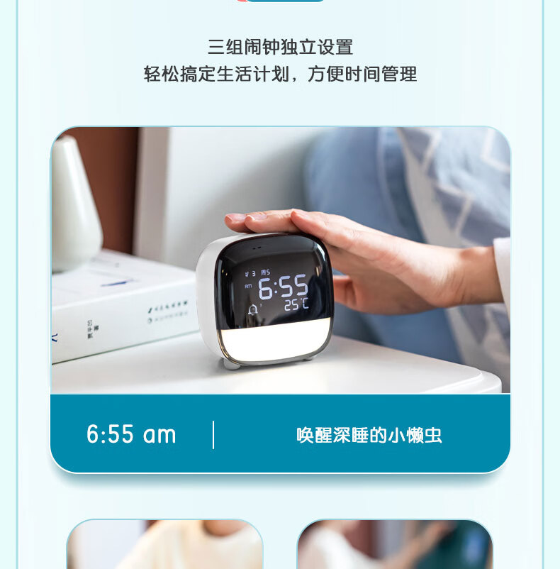 Deli multifunctional LCD cute pet smart alarm clock 1200mAh student night light bedside clock clock children's bedroom clock time manager gift white 8852 school season