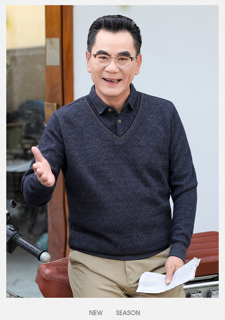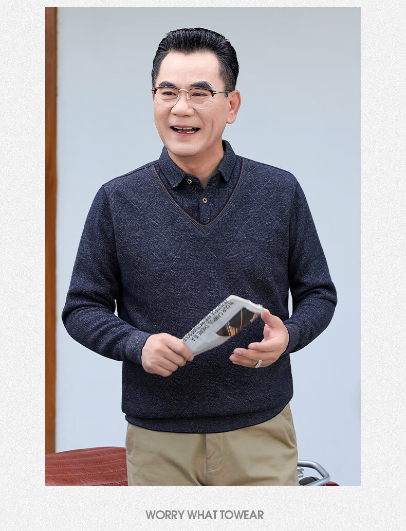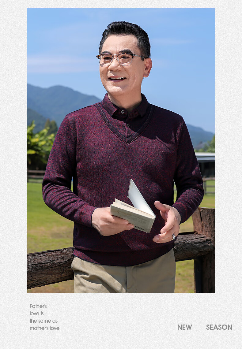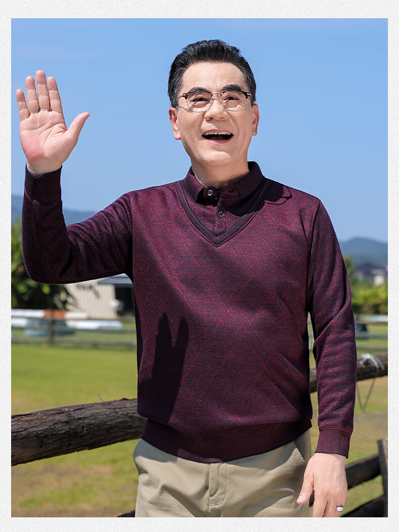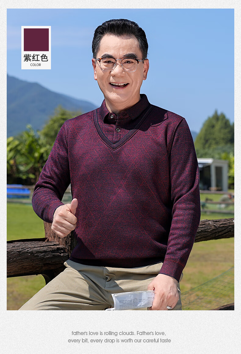 Classic car (LAOYECHE) Dad's fake two-piece sweater for men's winter animal year red velvet thickened sweater for middle-aged and elderly people