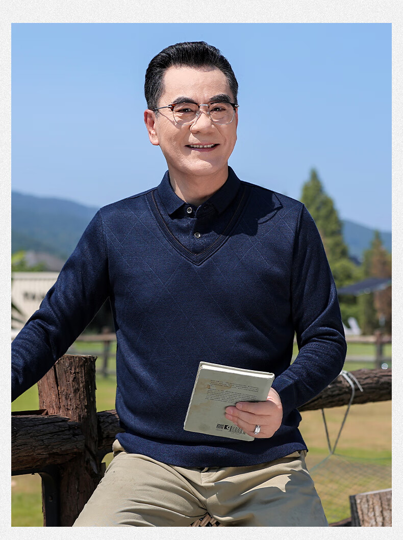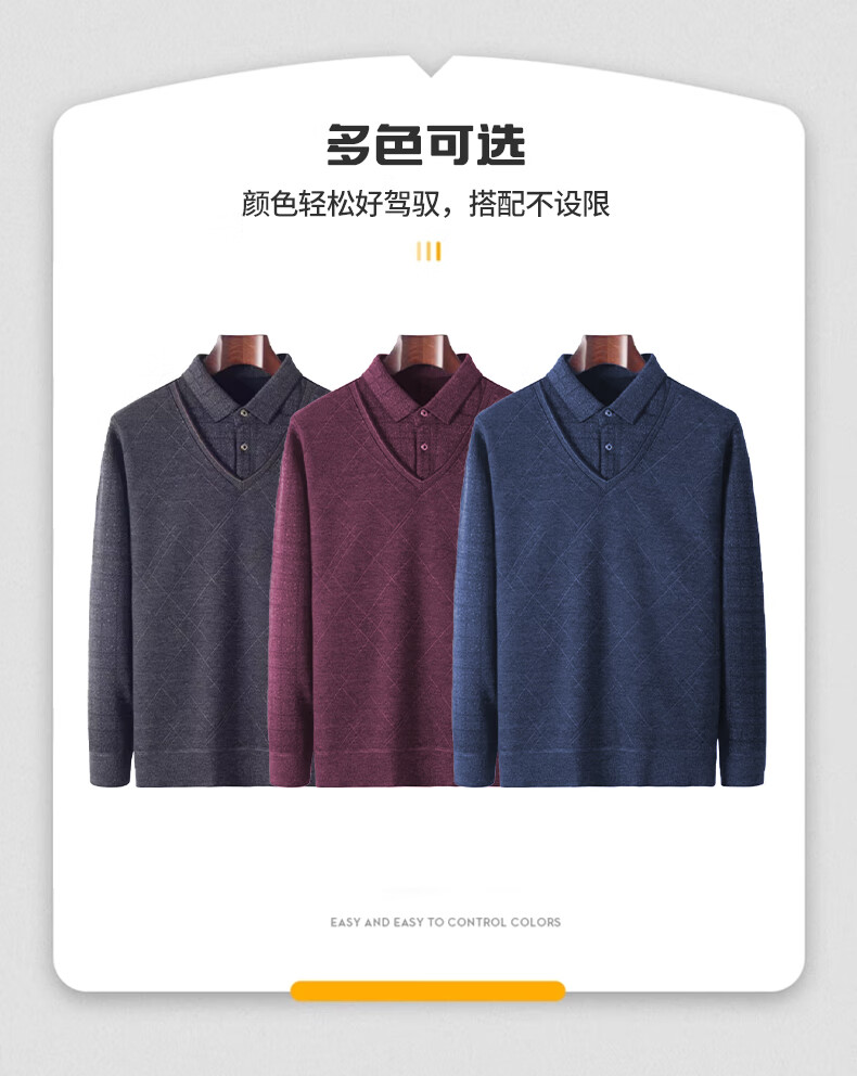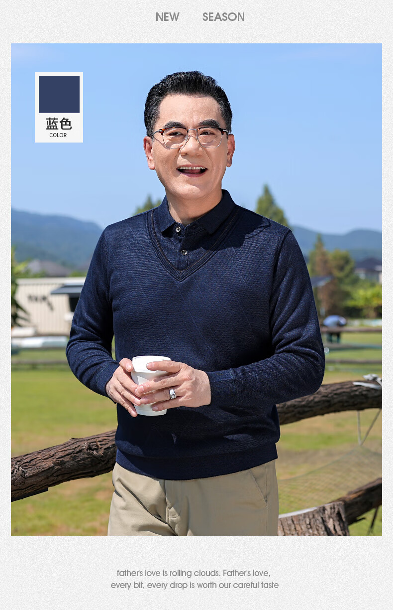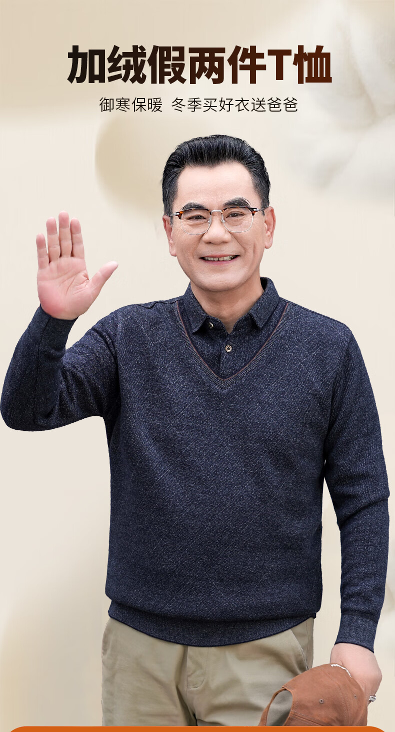 Classic car (LAOYECHE) Dad's fake two-piece sweater for men's winter animal year red velvet thickened sweater for middle-aged and elderly people