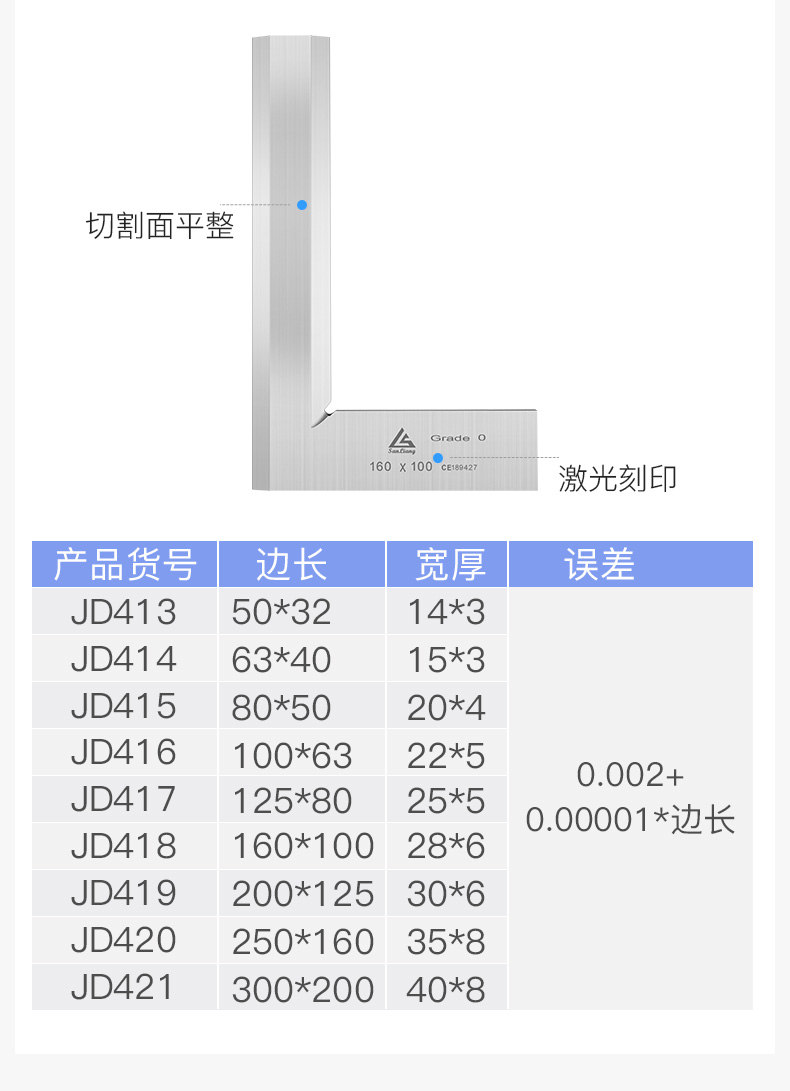 Three-quantity high-precision stainless steel right-angle ruler 50-300mm knife-edge square ruler 90-degree angle ruler knife-edge turning ruler JD415 80*50mm