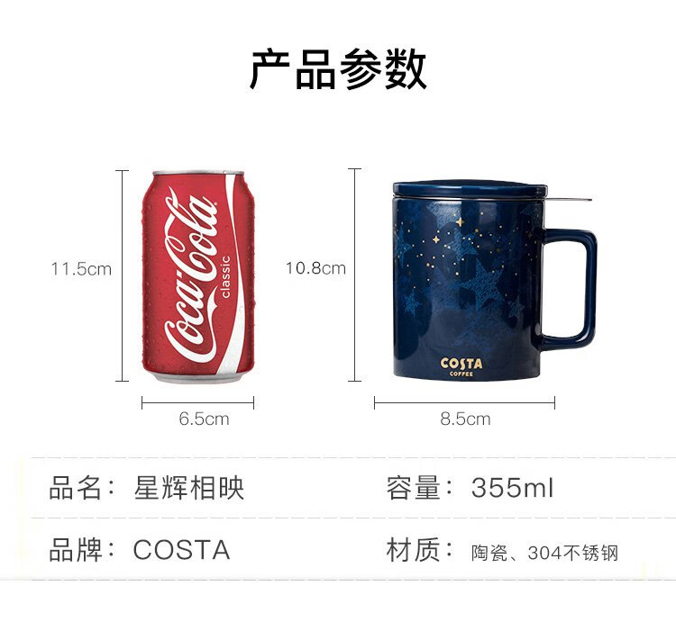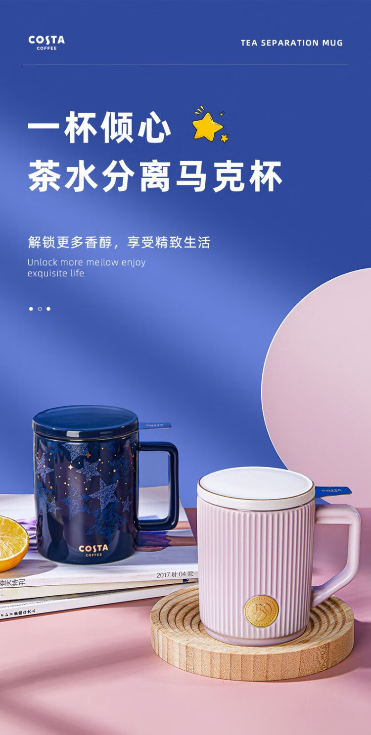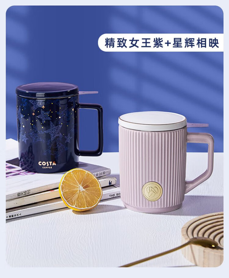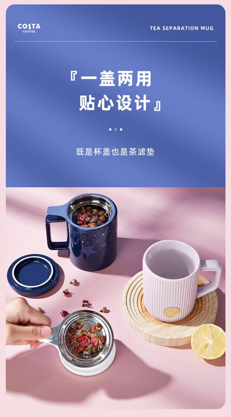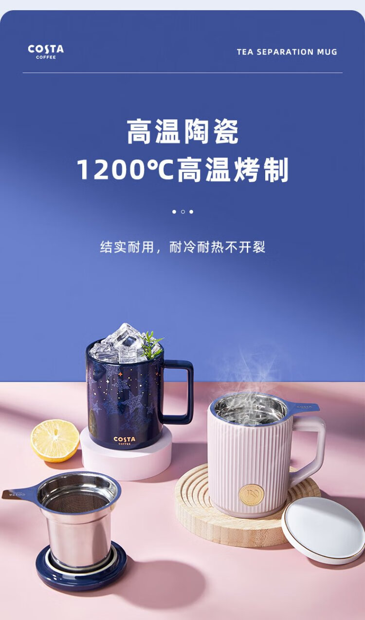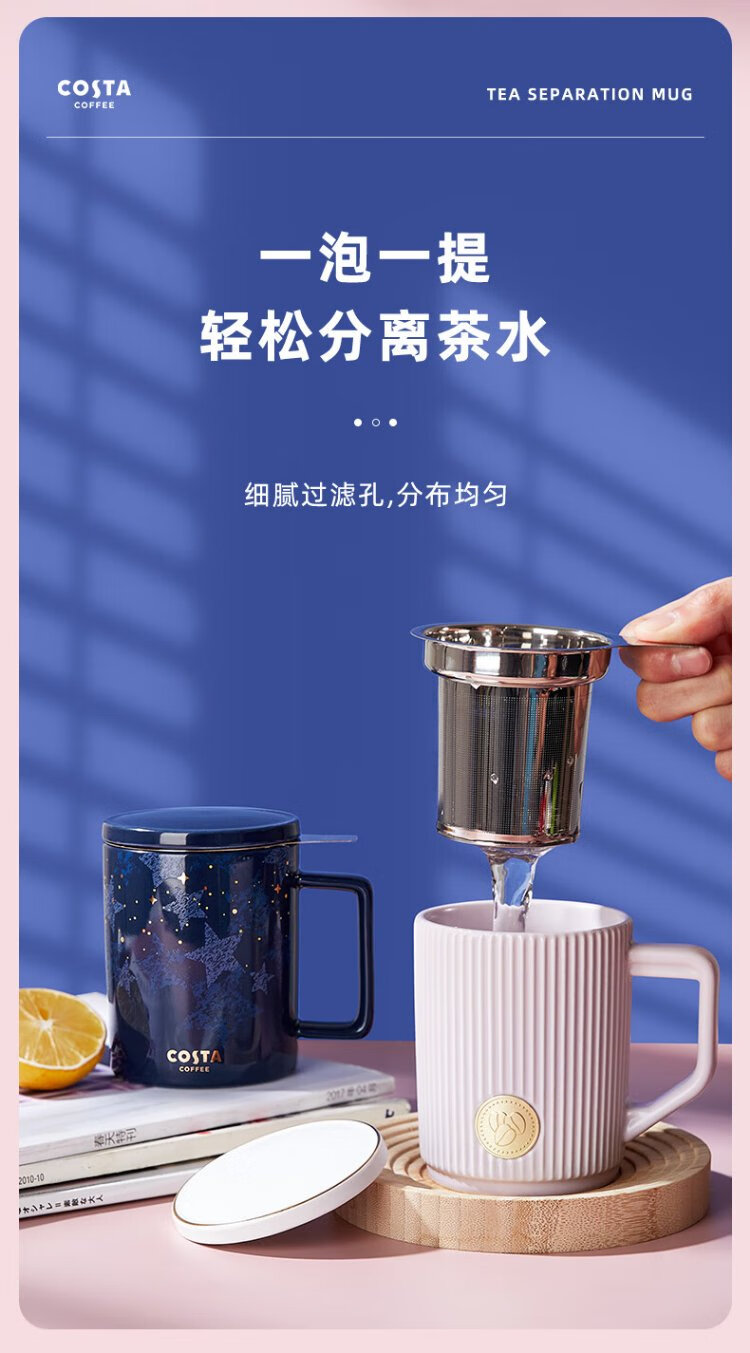 COSTA ceramic mug with lid for tea and water separation birthday gift gift cup for men and women office water cup coffee cup