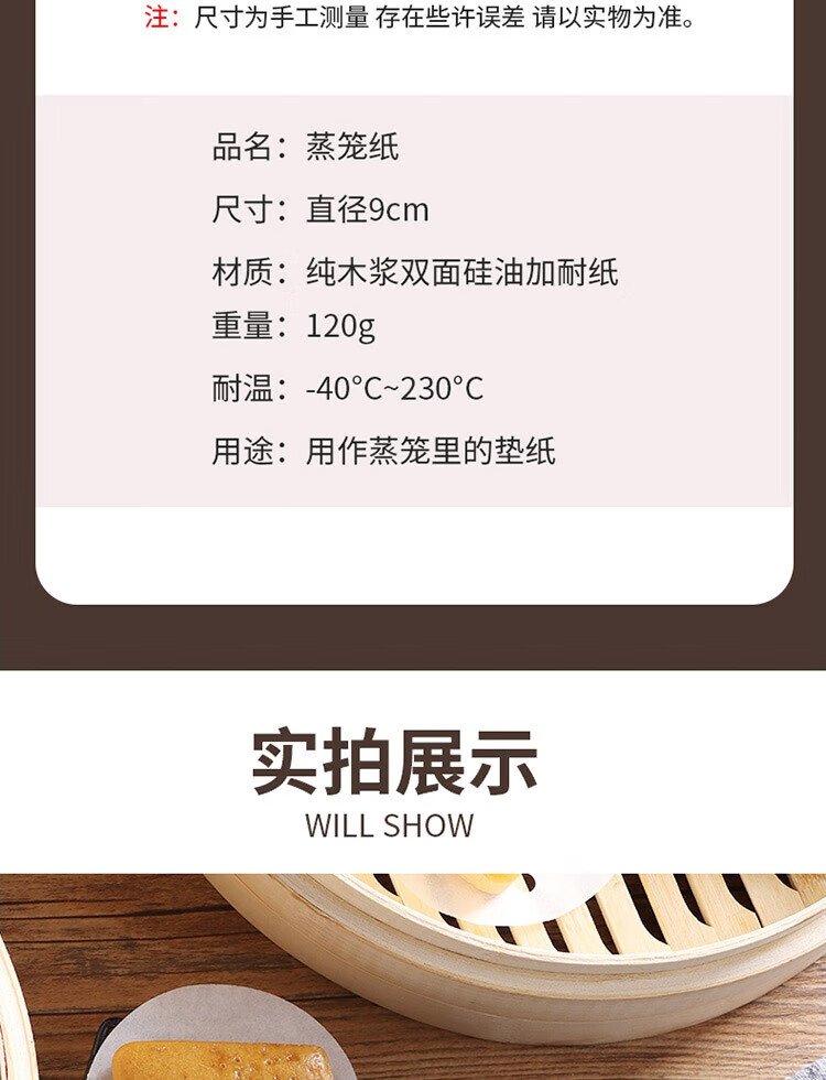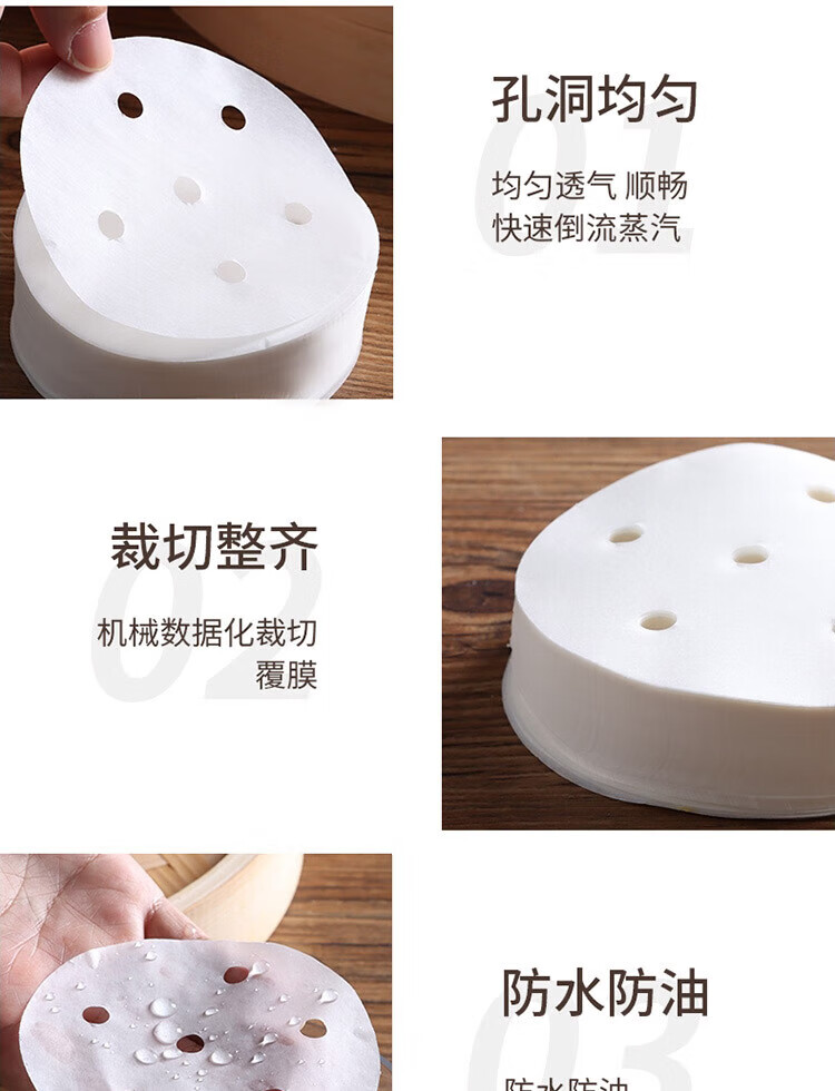 Baiji steamer paper 500 sheets disposable food-grade steamed bun paper steamed bun paper non-stick household steamer paper diameter 9cm