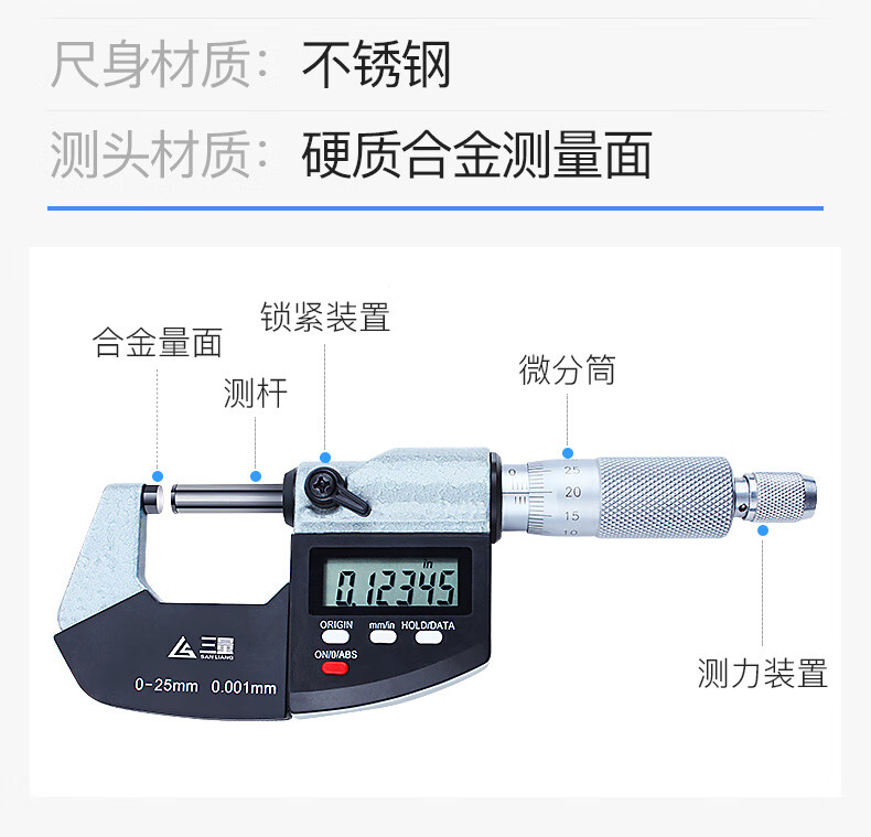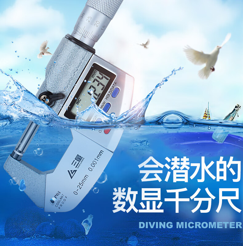 Three-quantity IP65 waterproof digital micrometer outer diameter 0-25-50-75-100mm micrometer caliper spiral micrometer JDE05 waterproof type 25-50mm