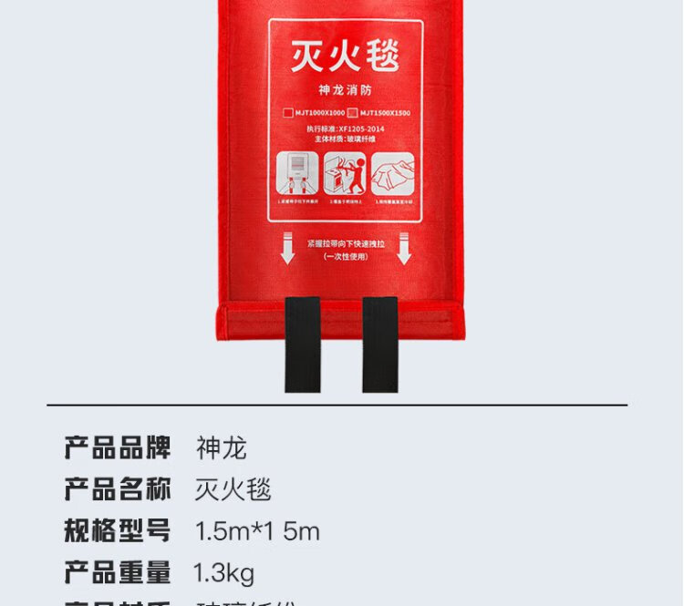 Shenlong Fiberglass Fire Blanket Vehicle Home Hotel Fire Safety Emergency Blanket 1.5m 1.5m Fire Fighting Equipment