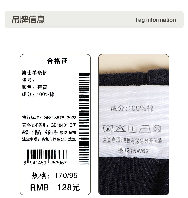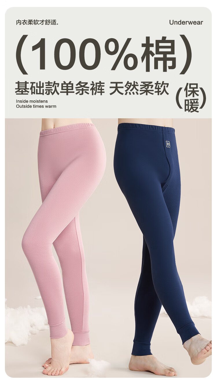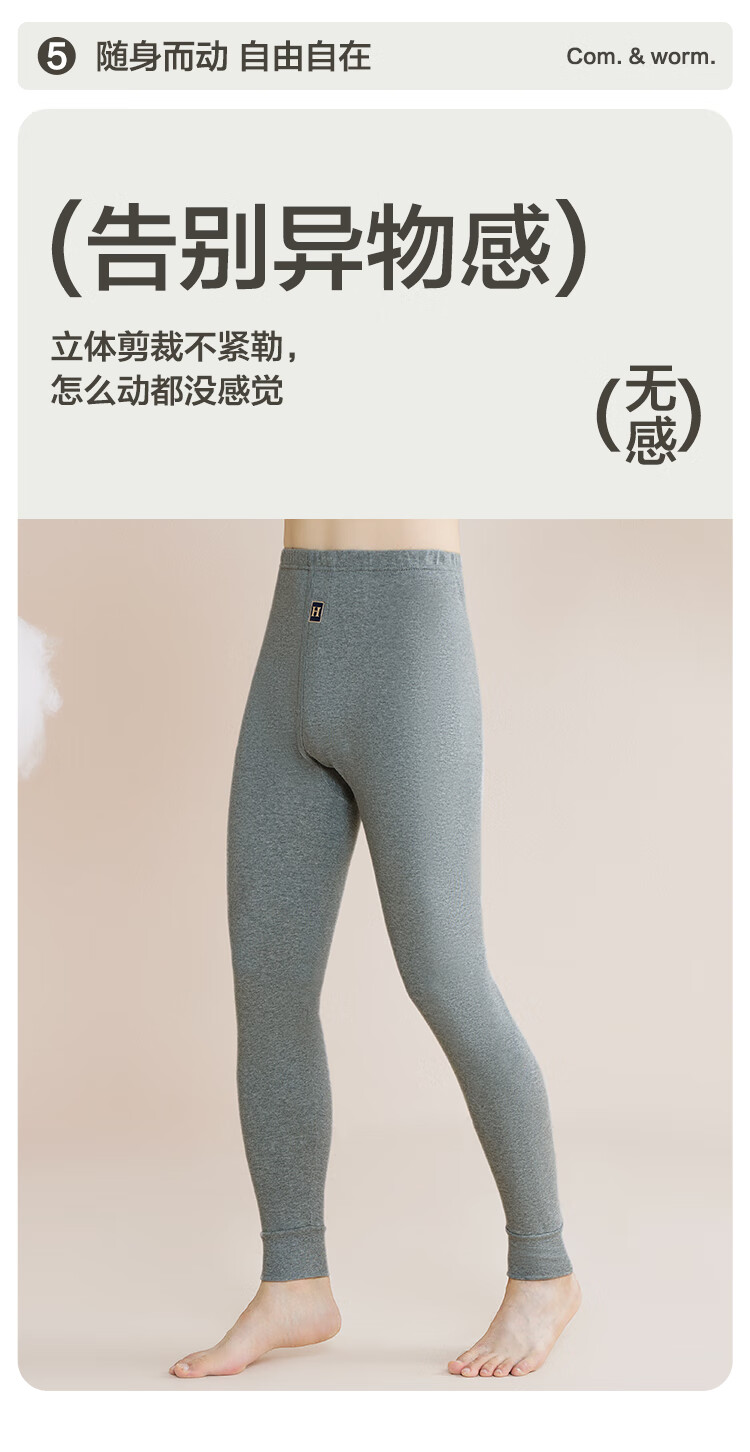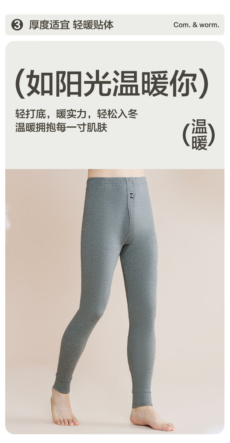 Red Bean Underwear Men's Pure Cotton Warm Pants Comfortable, Soft, Elastic and Breathable Single Pair of Autumn Pants Dark Linen Gray