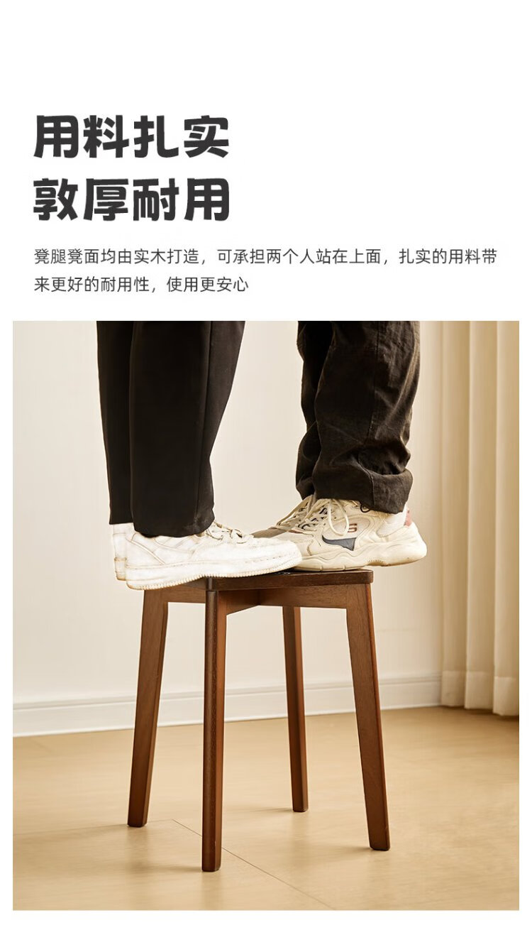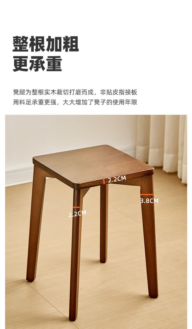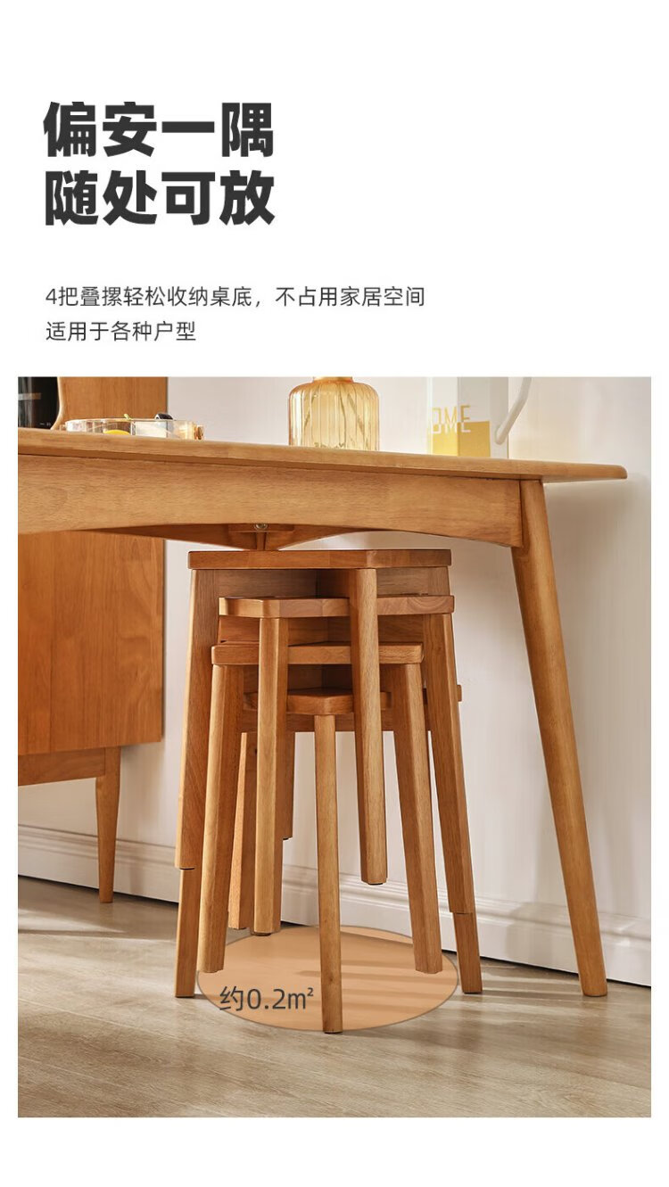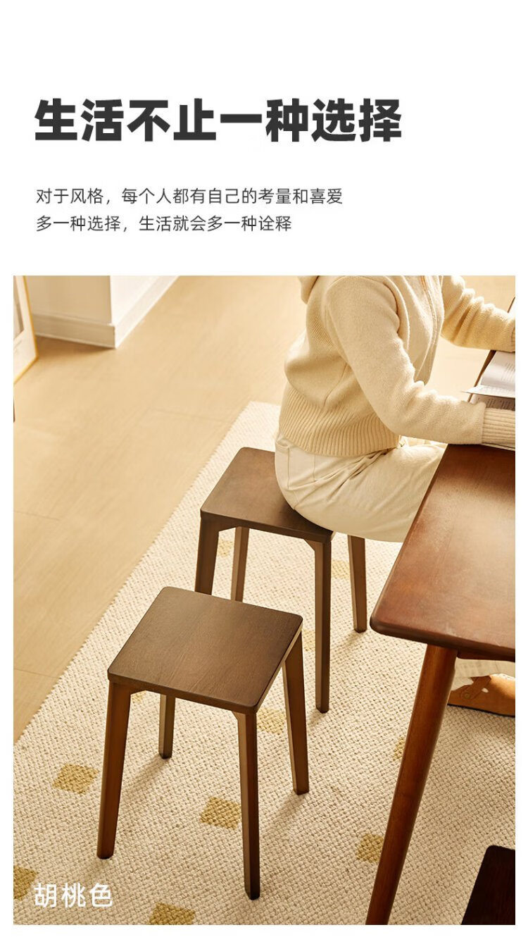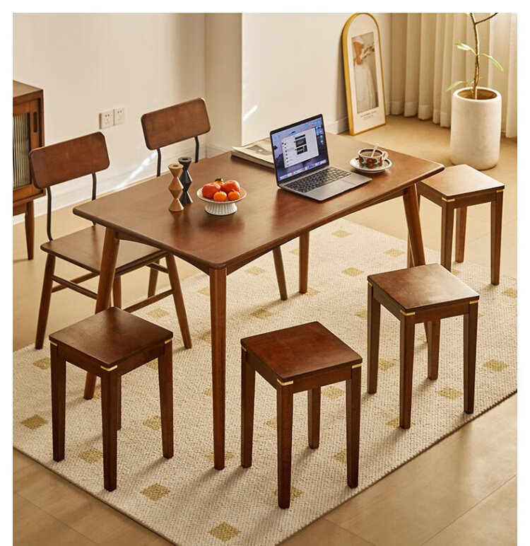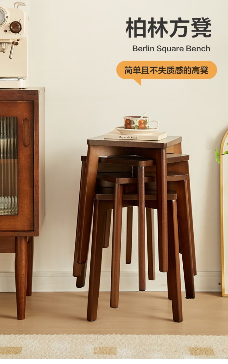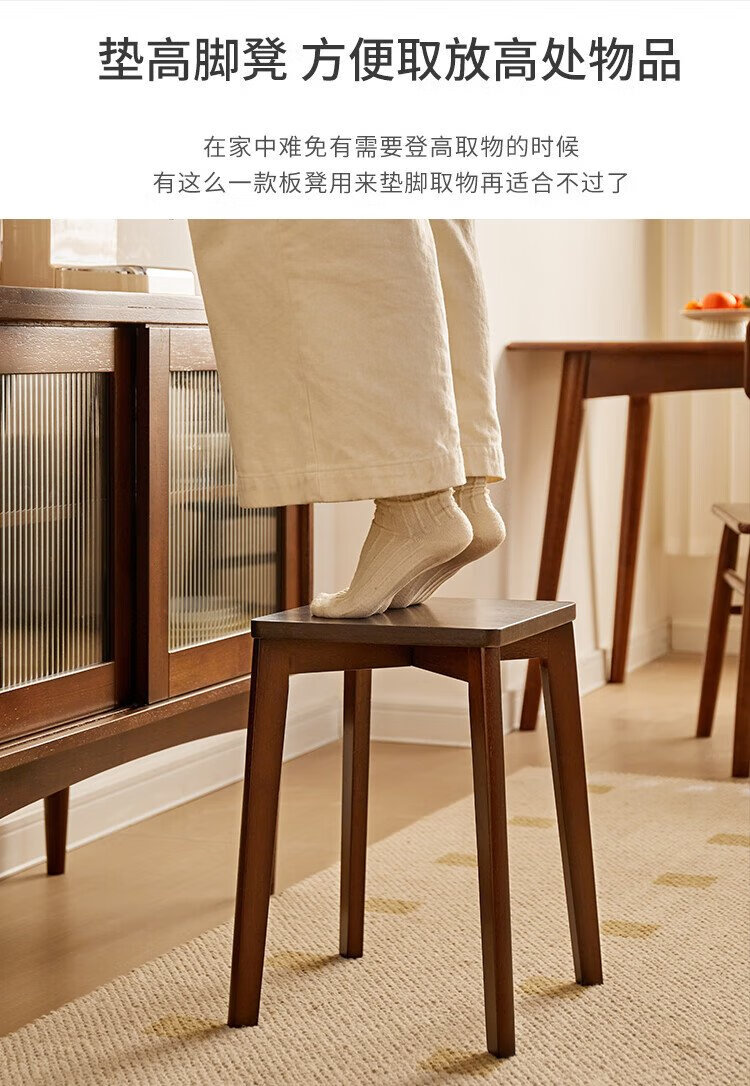 Jiayi solid wood stool home dining table stool living room dining chair creative stackable square stool log color bench bedroom dressing stool