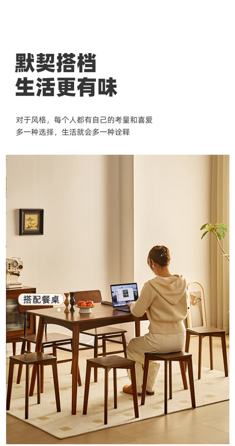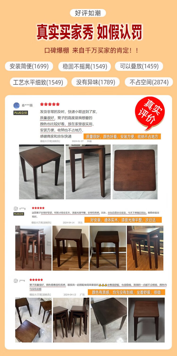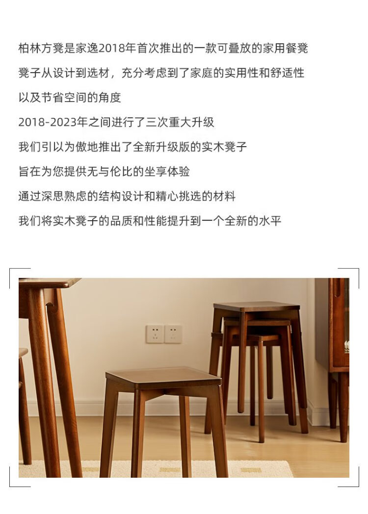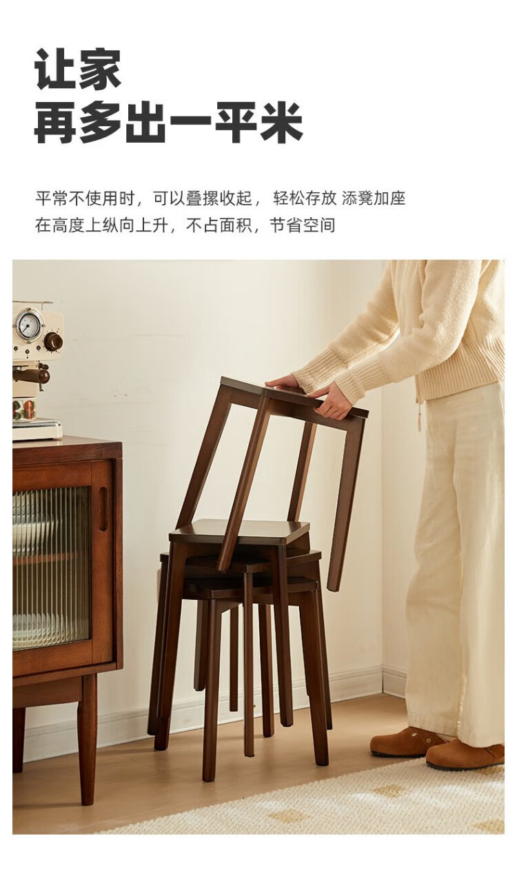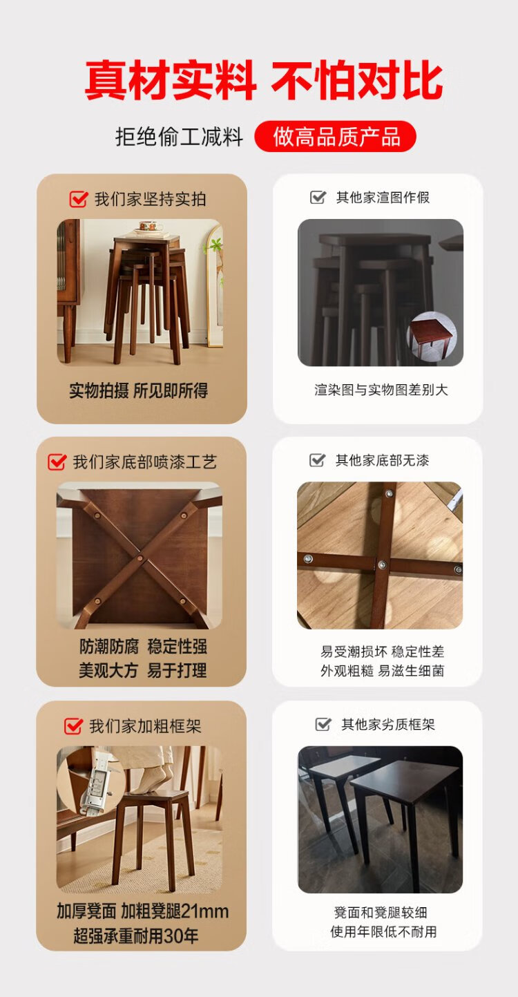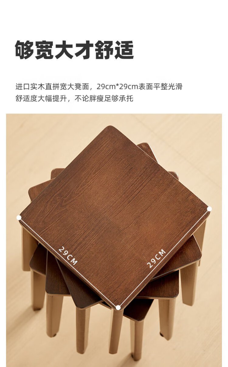 Jiayi solid wood stool home dining table stool living room dining chair creative stackable square stool log color bench bedroom dressing stool