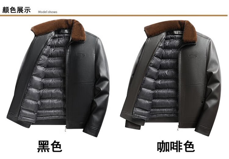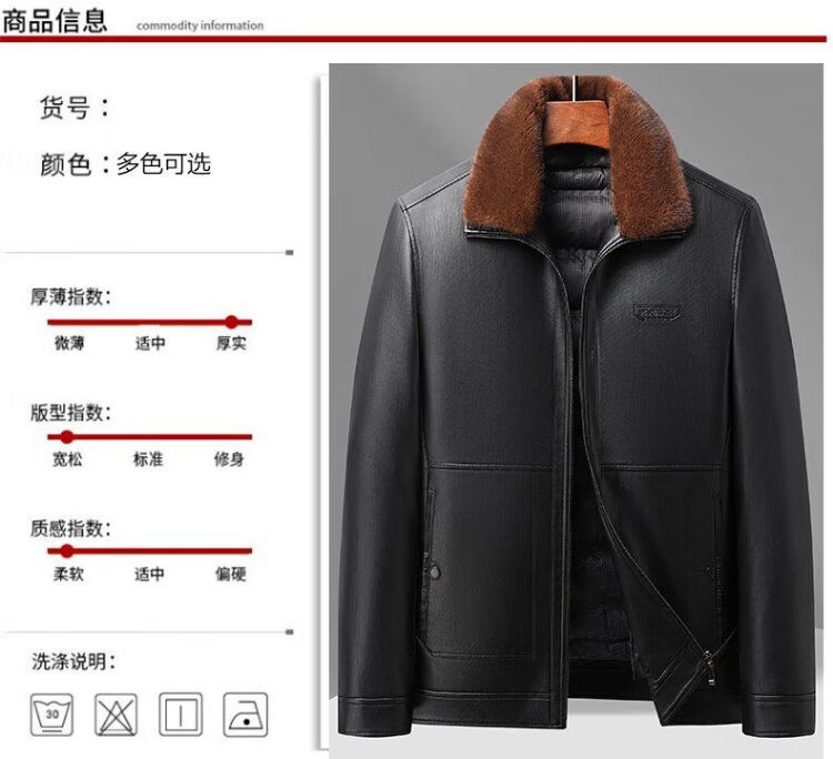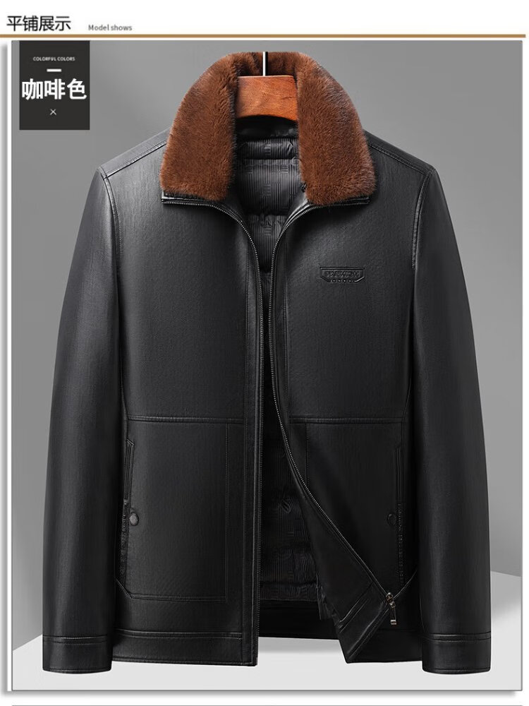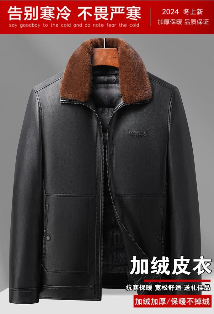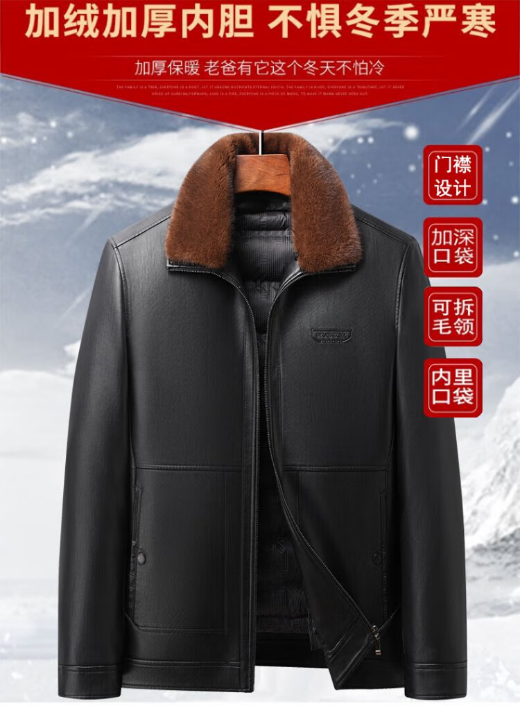 Luo Meng removable inner liner leather jacket men's velvet thickened winter leather jacket young and middle-aged casual dad jacket