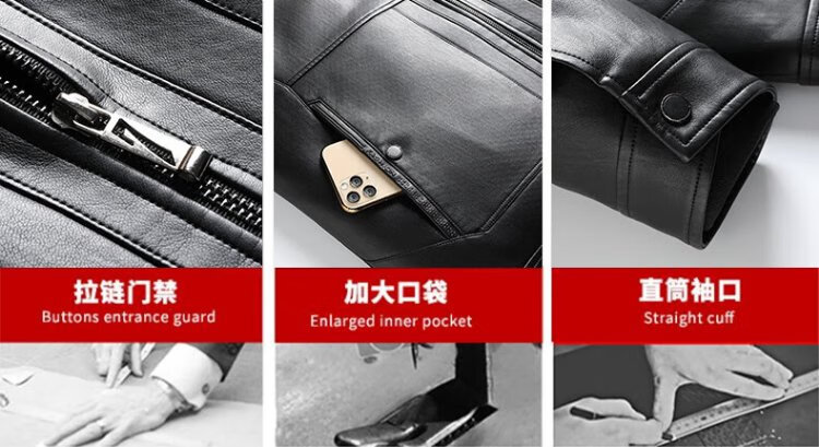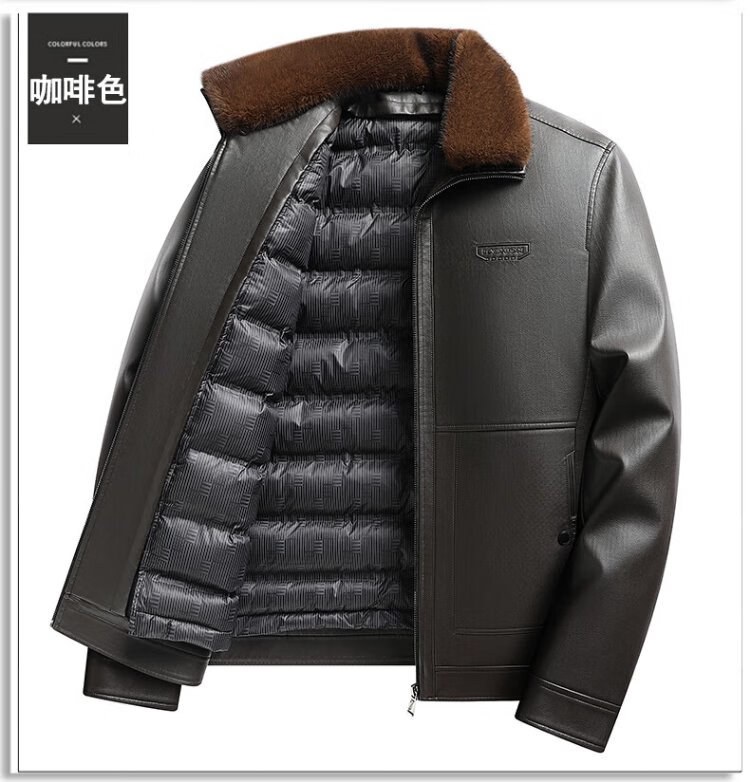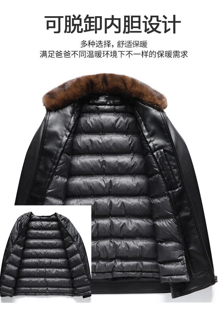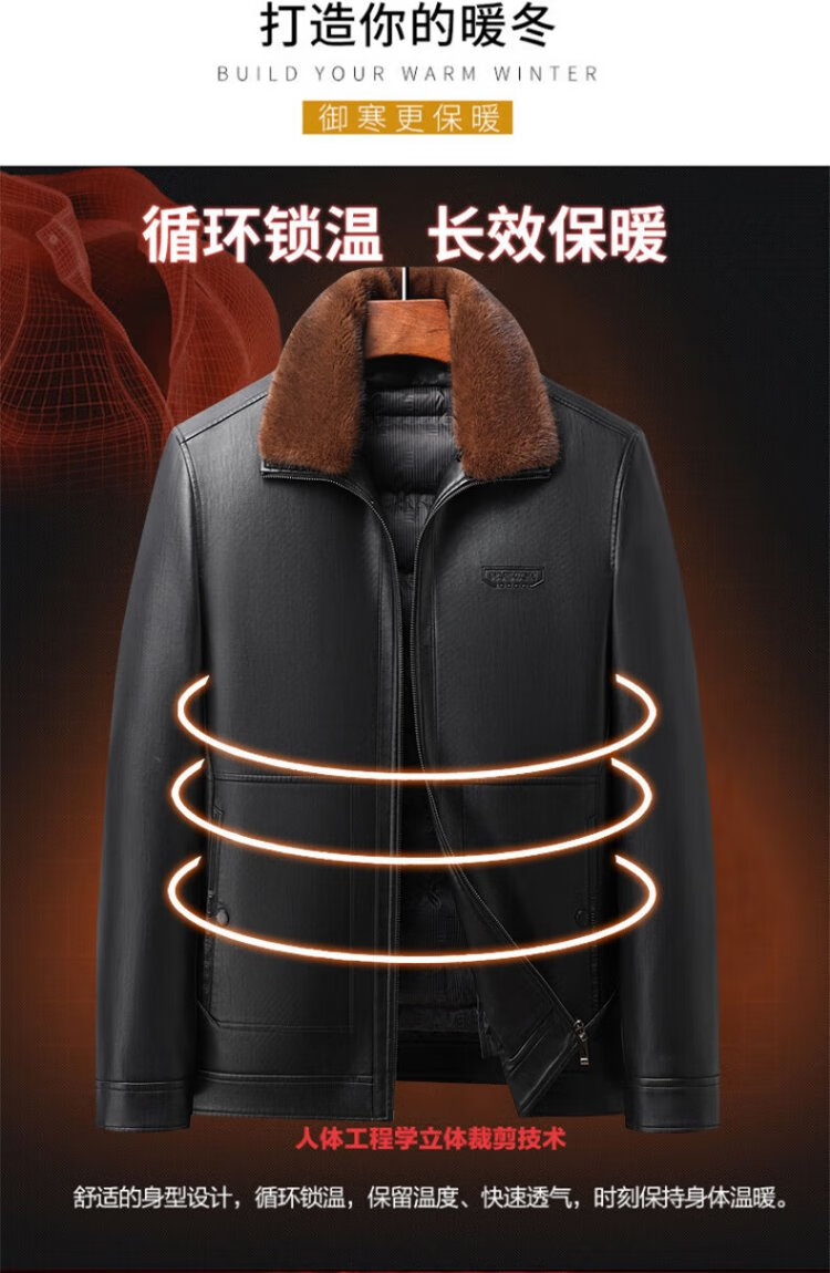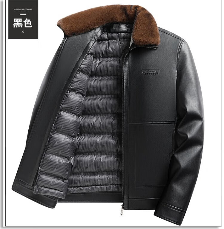Luo Meng removable inner liner leather jacket men's velvet thickened winter leather jacket young and middle-aged casual dad jacket