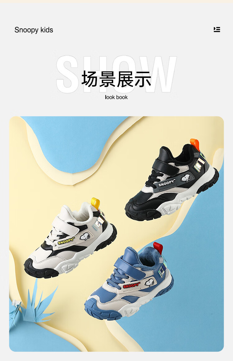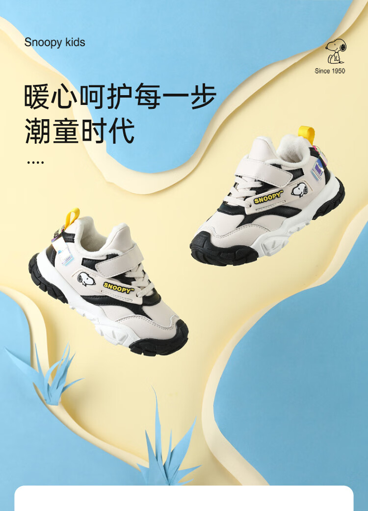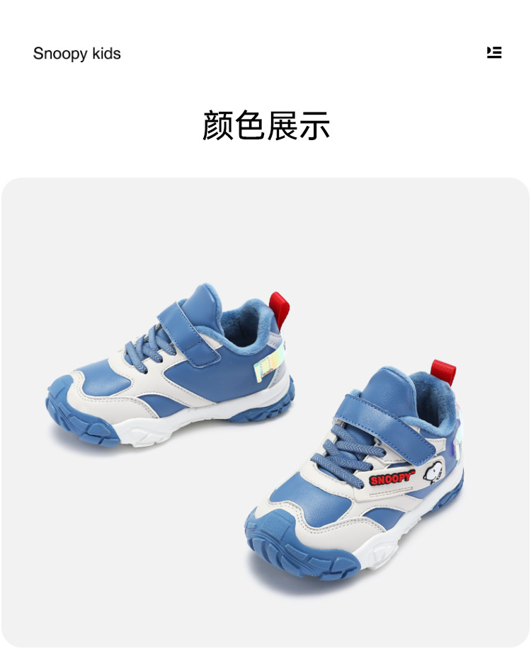 SNOOPY Snoopy children's shoes boys' sports shoes winter second cotton warm cotton shoes children's fashion casual shoes 3058 blue 25