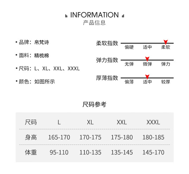 China (cm) 165 / 88-90 170 / 96-98 175 / 108-110 180 / 118-122 185 / 126-130