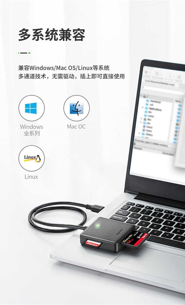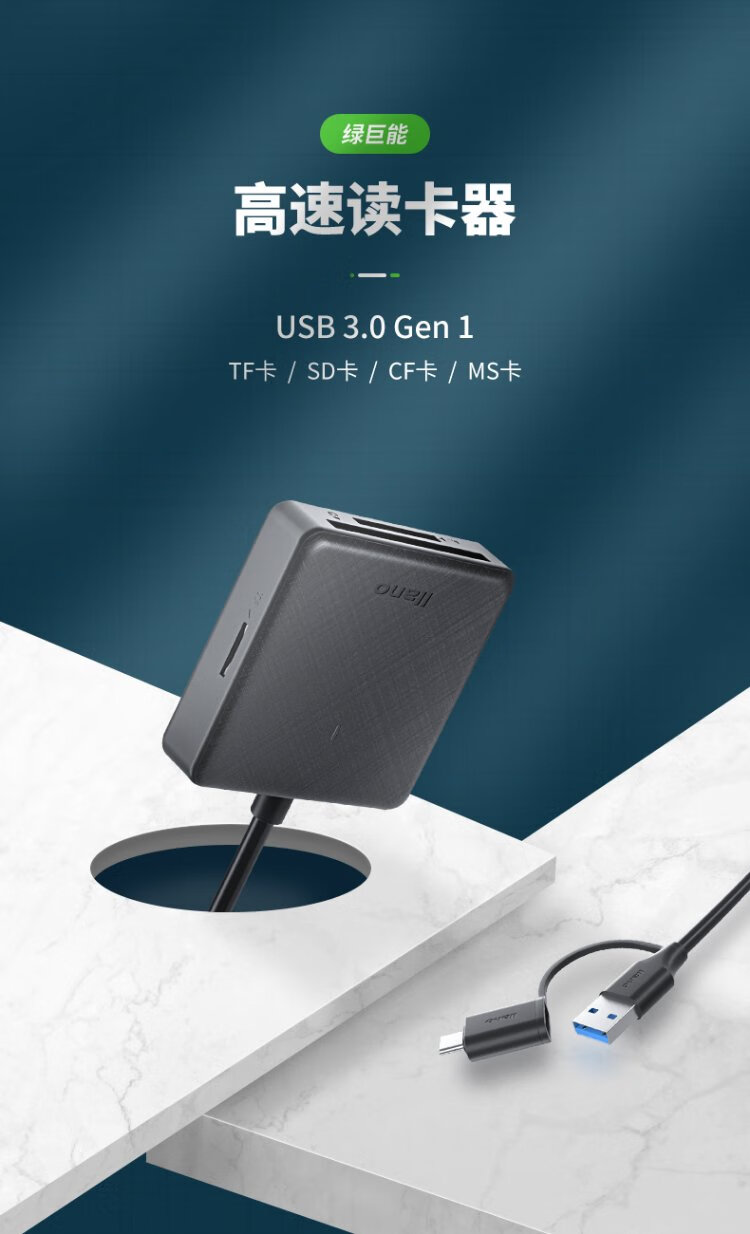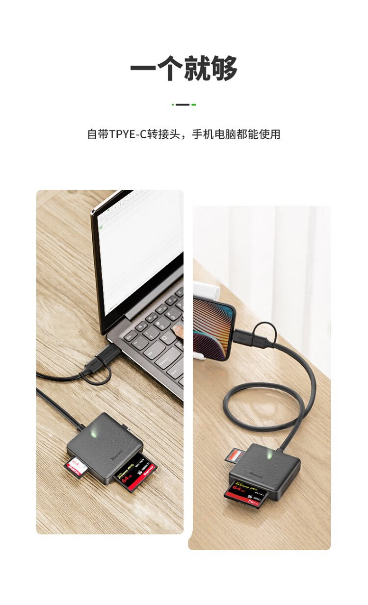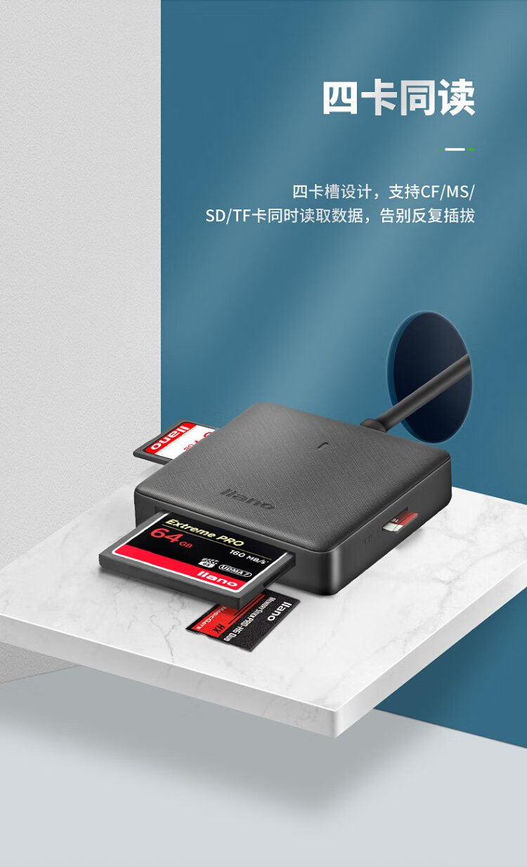 Llano card reader all-in-one SD card reader supports SD/TF/CF/MS cards suitable for cameras and mobile phones USB3.0 multi-function type-c card reader with multiple drive letters