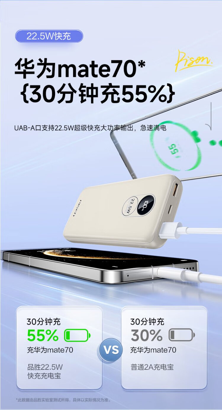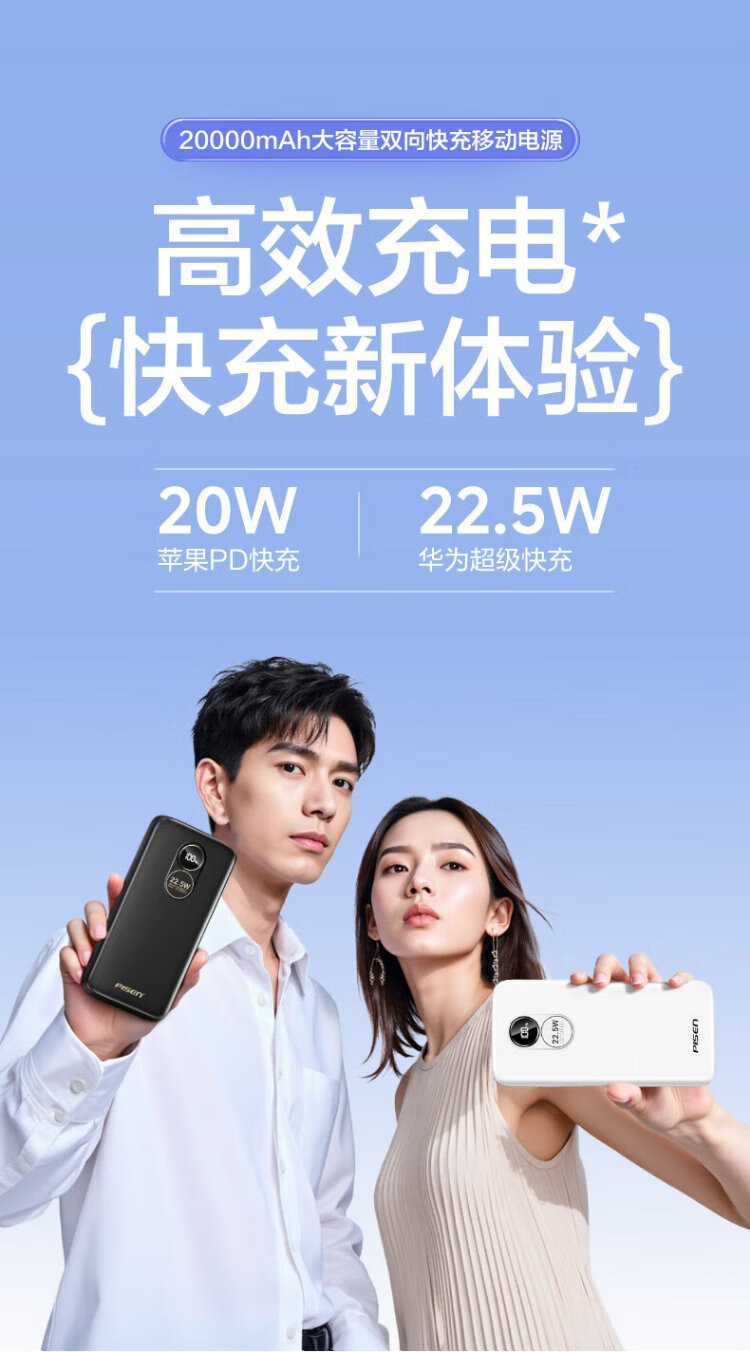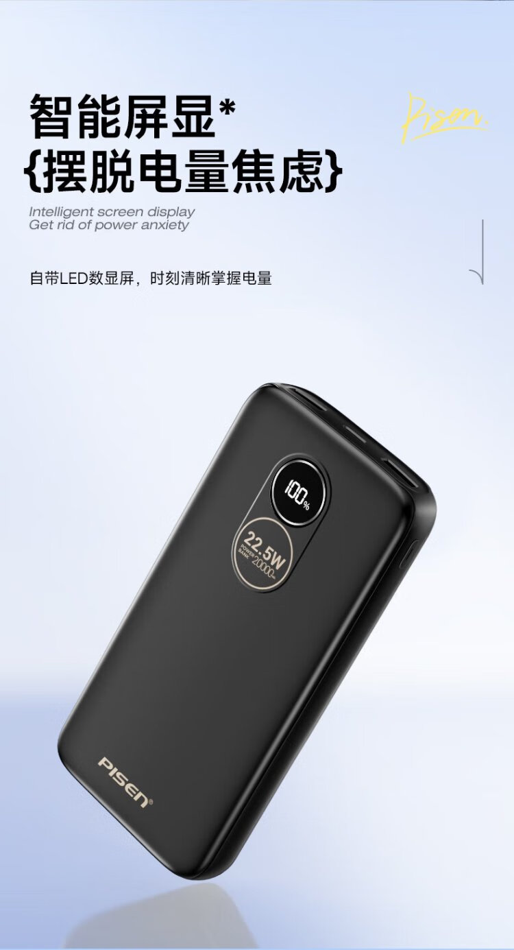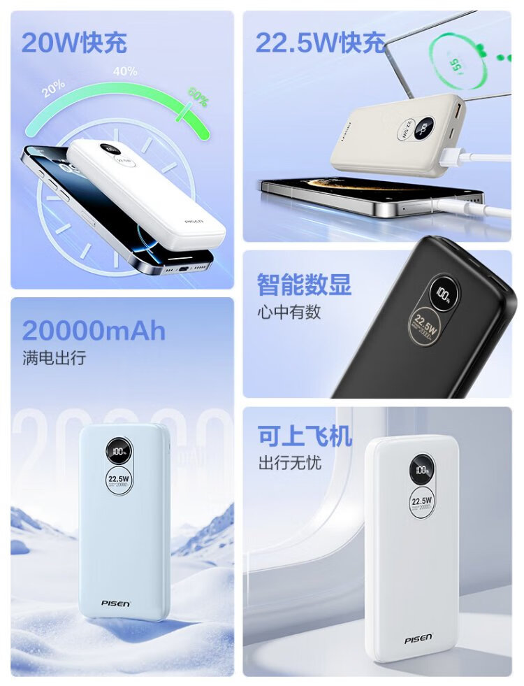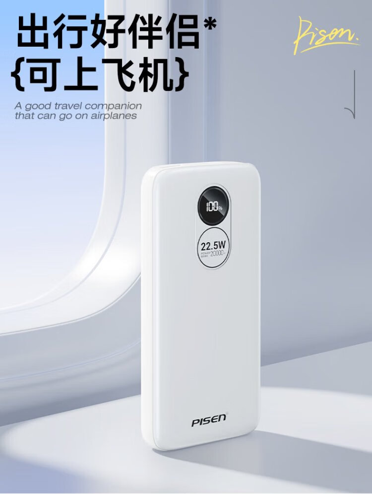 Pinsheng 3C certified 22.5W super fast charge 20000mAh large capacity power bank can be used on the plane portable power bank suitable for Apple 17promax Xiaomi Huawei white