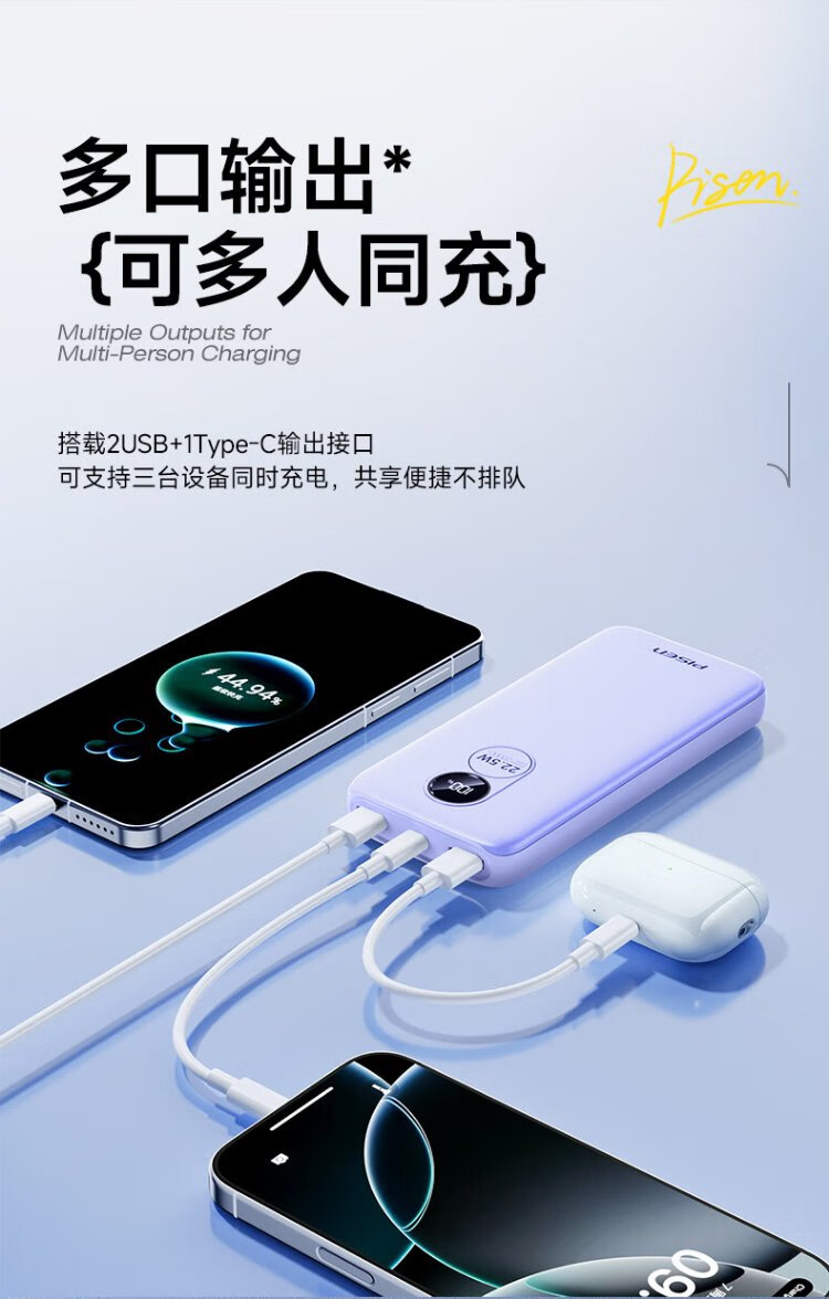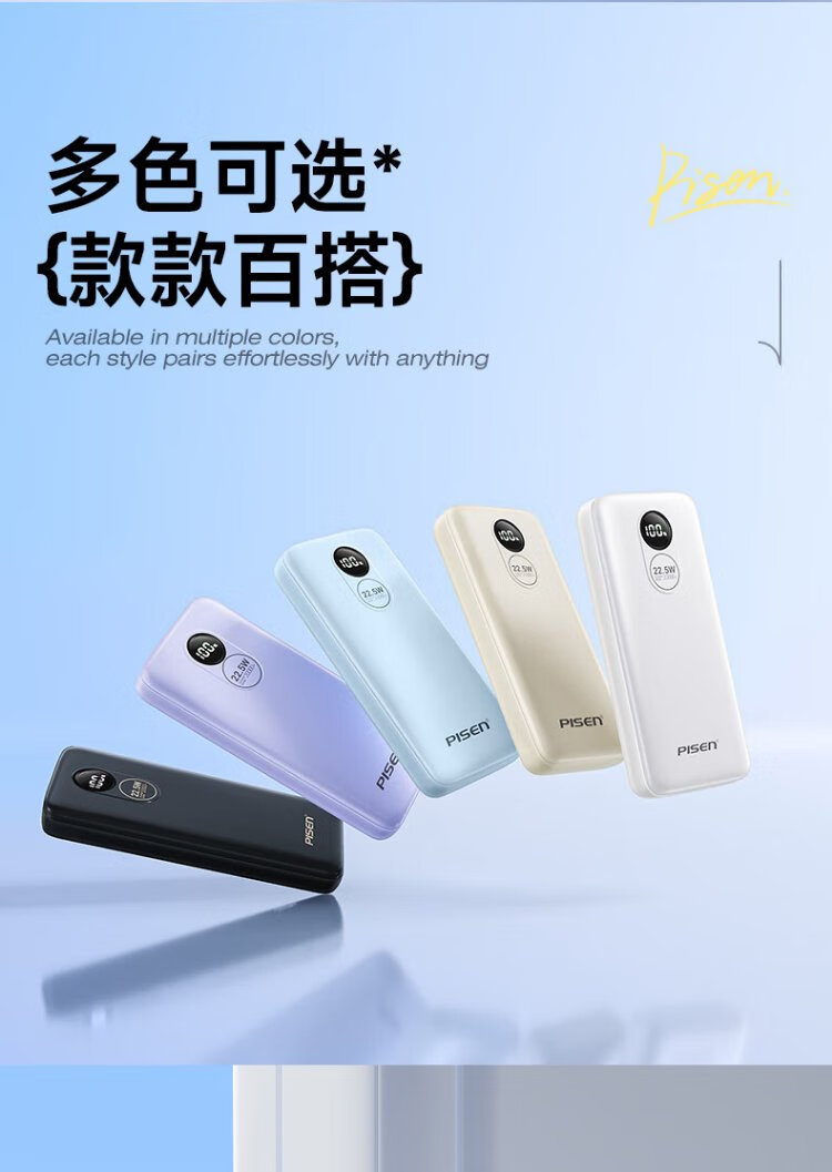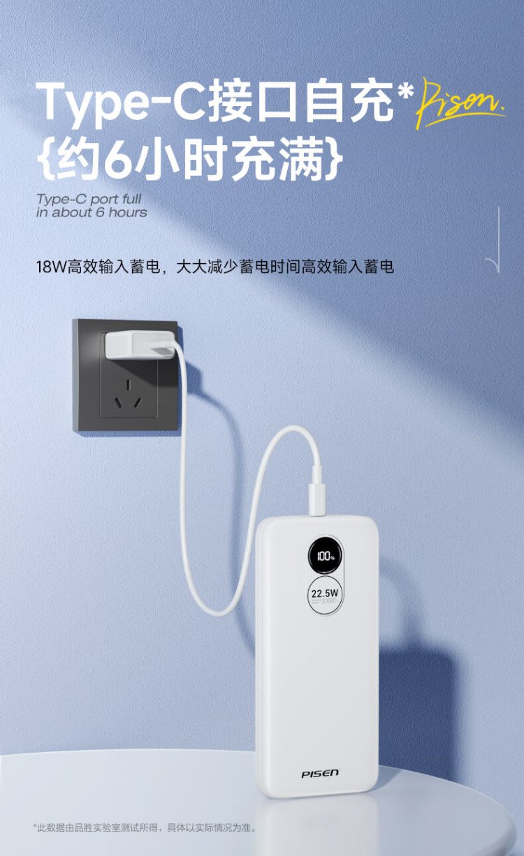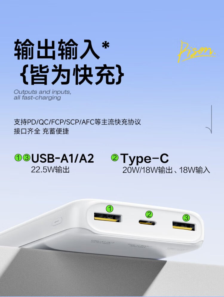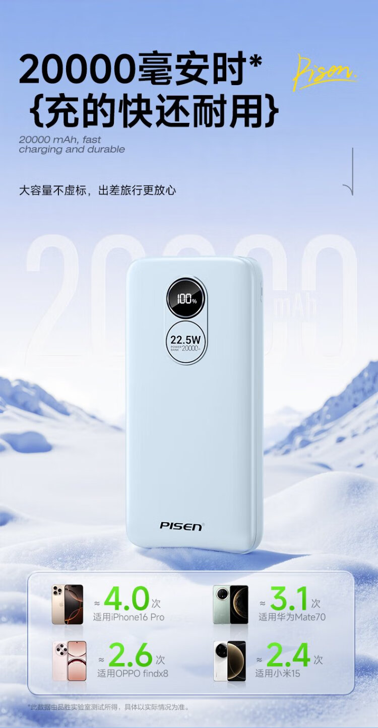 Pinsheng 3C certified 22.5W super fast charge 20000mAh large capacity power bank can be used on the plane portable power bank suitable for Apple 17promax Xiaomi Huawei white