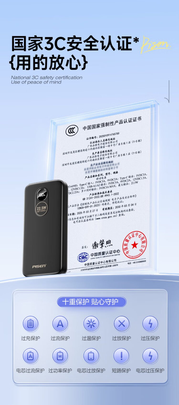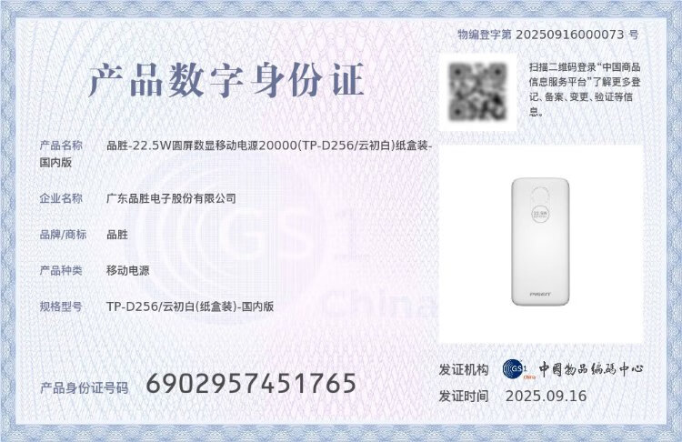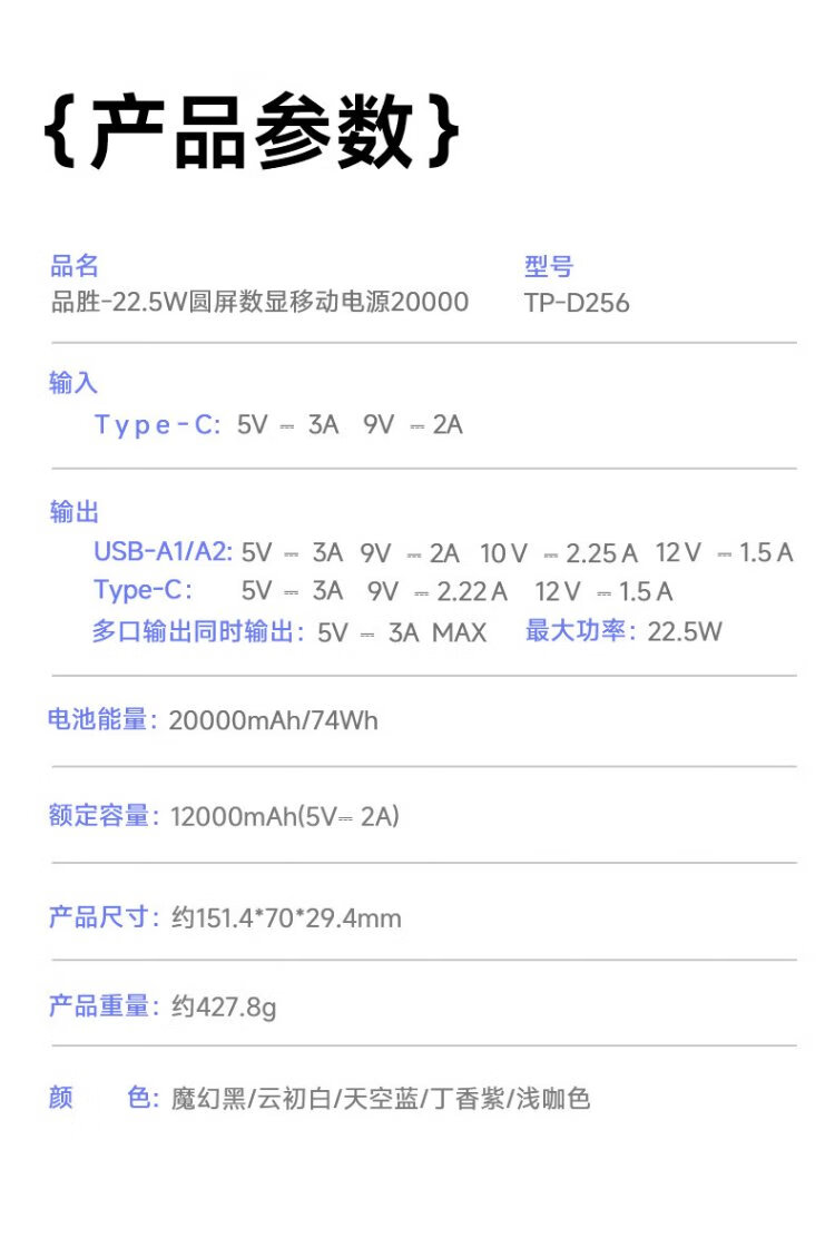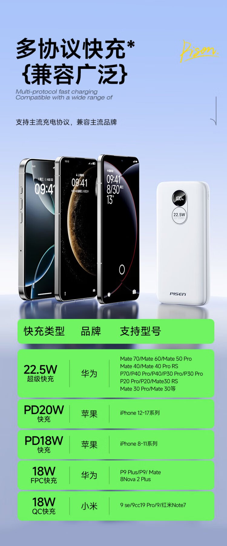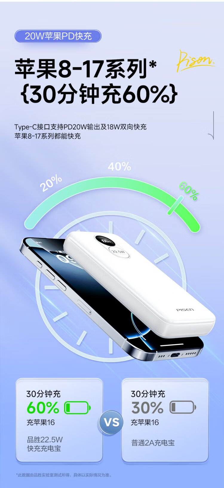 Pinsheng 3C certified 22.5W super fast charge 20000mAh large capacity power bank can be used on the plane portable power bank suitable for Apple 17promax Xiaomi Huawei white