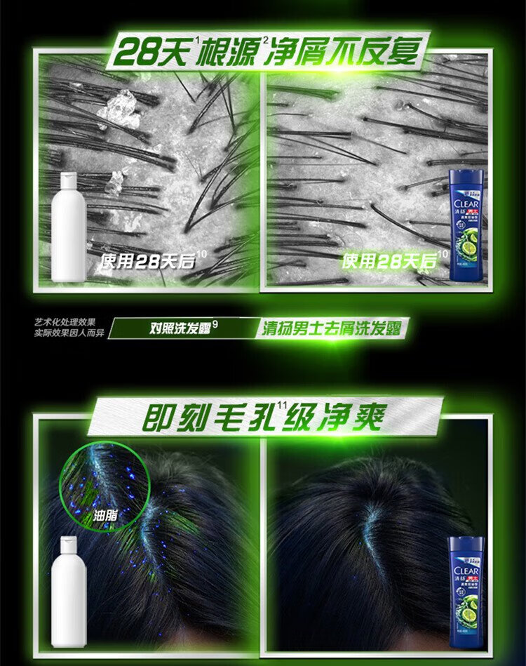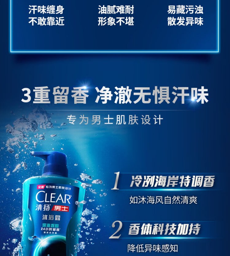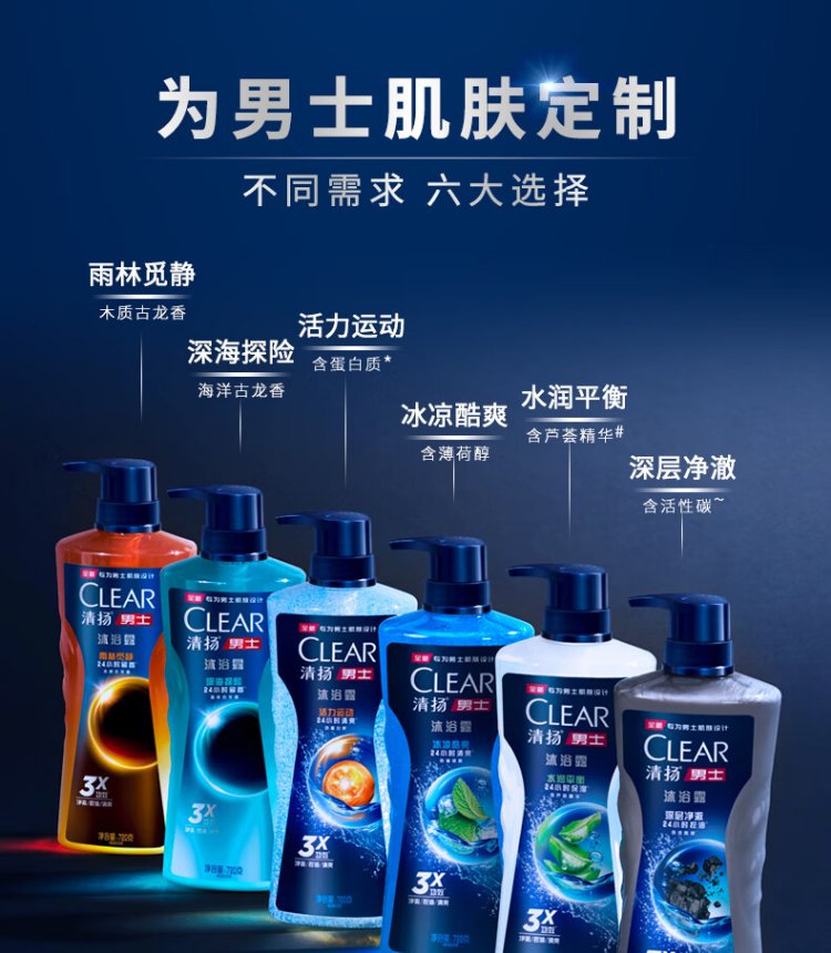 CLEAR Men's Shampoo and Shower Set Deep Sea Shower Gel 600g+100g + Refreshing Oil Control Shampoo 500g+100g
