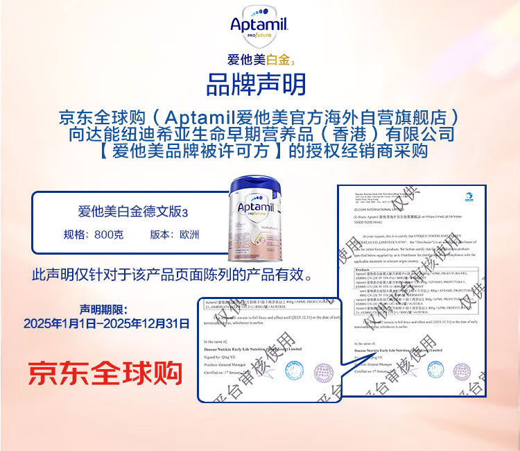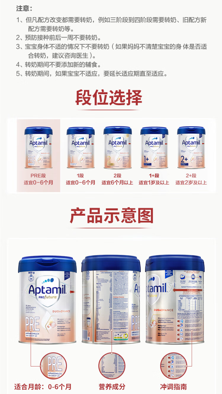 Aptamil German Platinum Edition HMO Infant Formula Pre-stage (0-6 months) 800g German Platinum