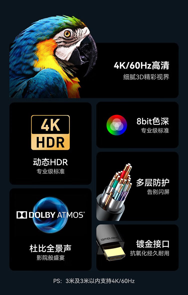 Shengwei (shengwei) HDMI cable version 2.0 computer TV 4K high-definition cable 3D video cable notebook external set-top box projector display cable 1.5 meters AHH3015G