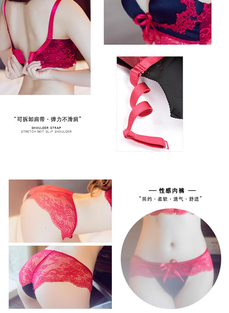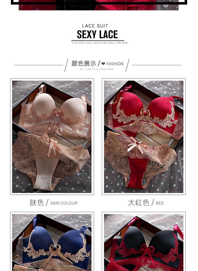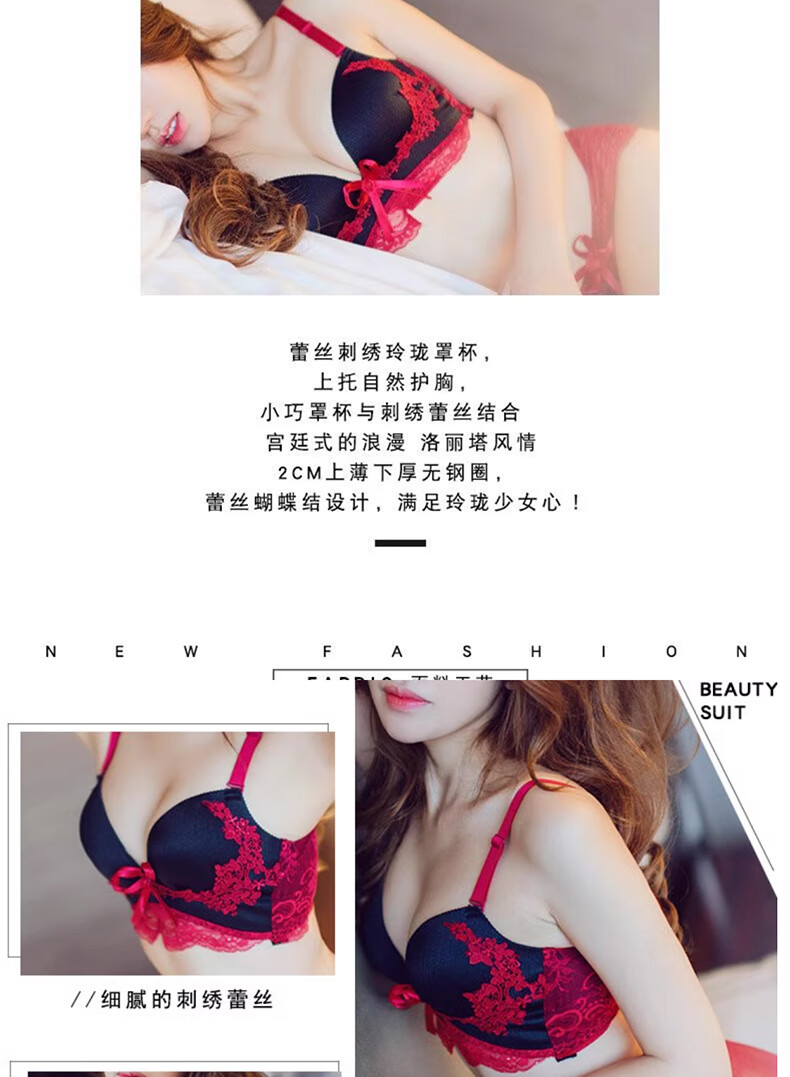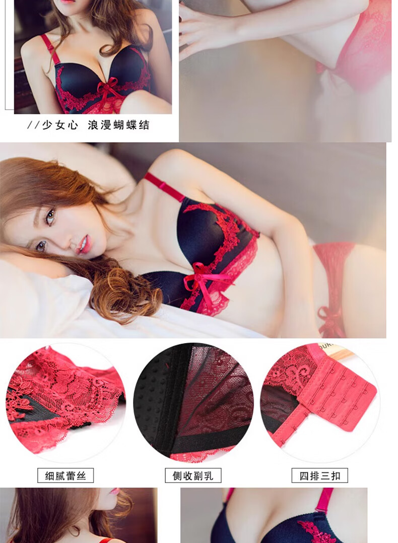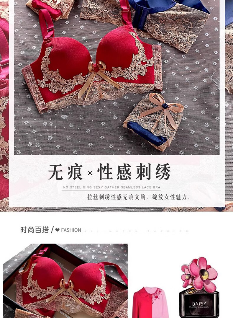 Langsha red underwear women's bra thickened cup small breasts big breasts wedding year of the horse palace style Qiji bra set