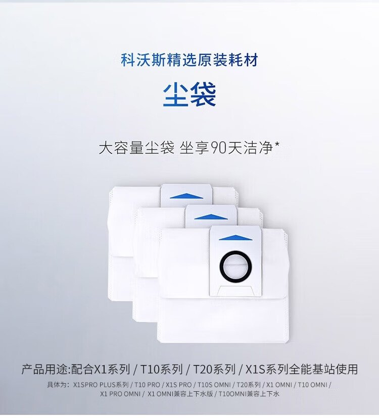 科沃斯(Ecovacs)配件集尘袋适用于(X1 系列型号,T10 OMNI ,T20系列)集尘袋*3【配件】
