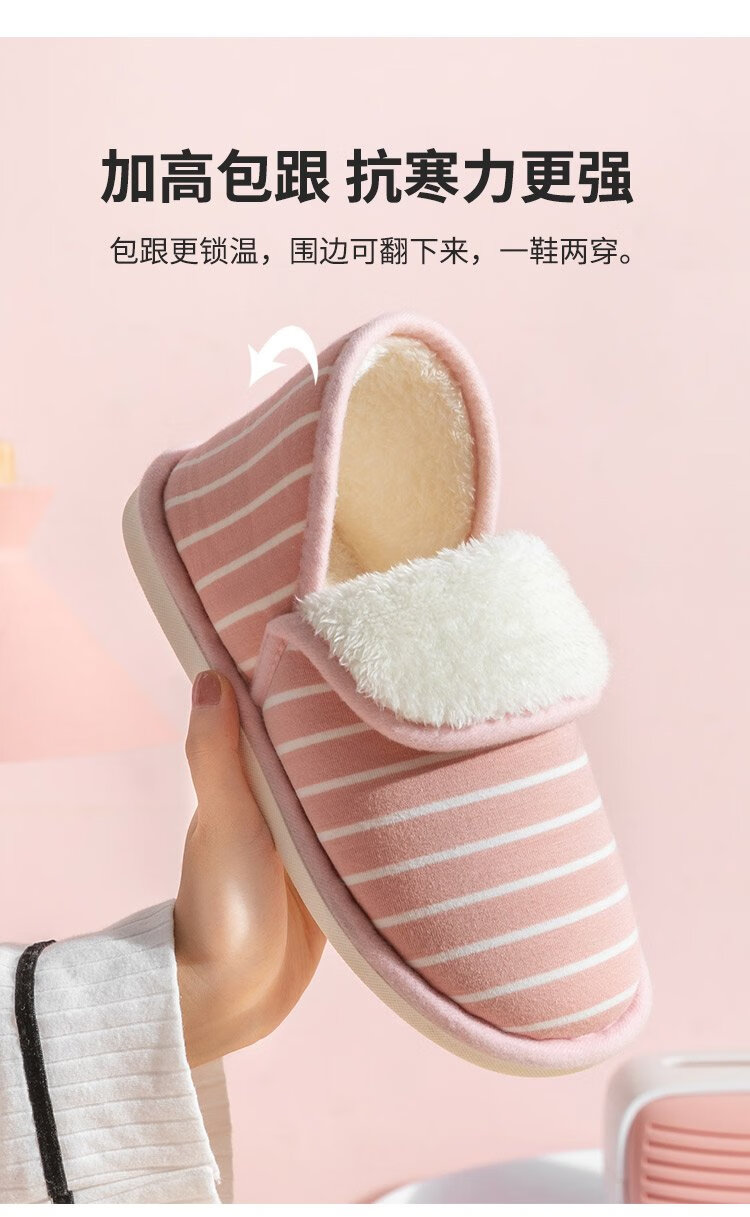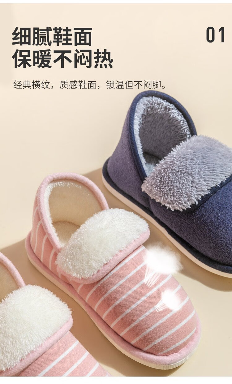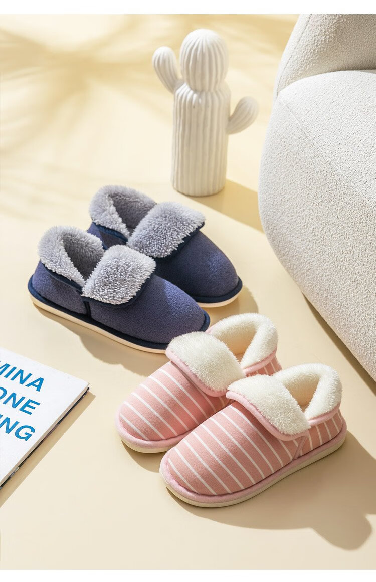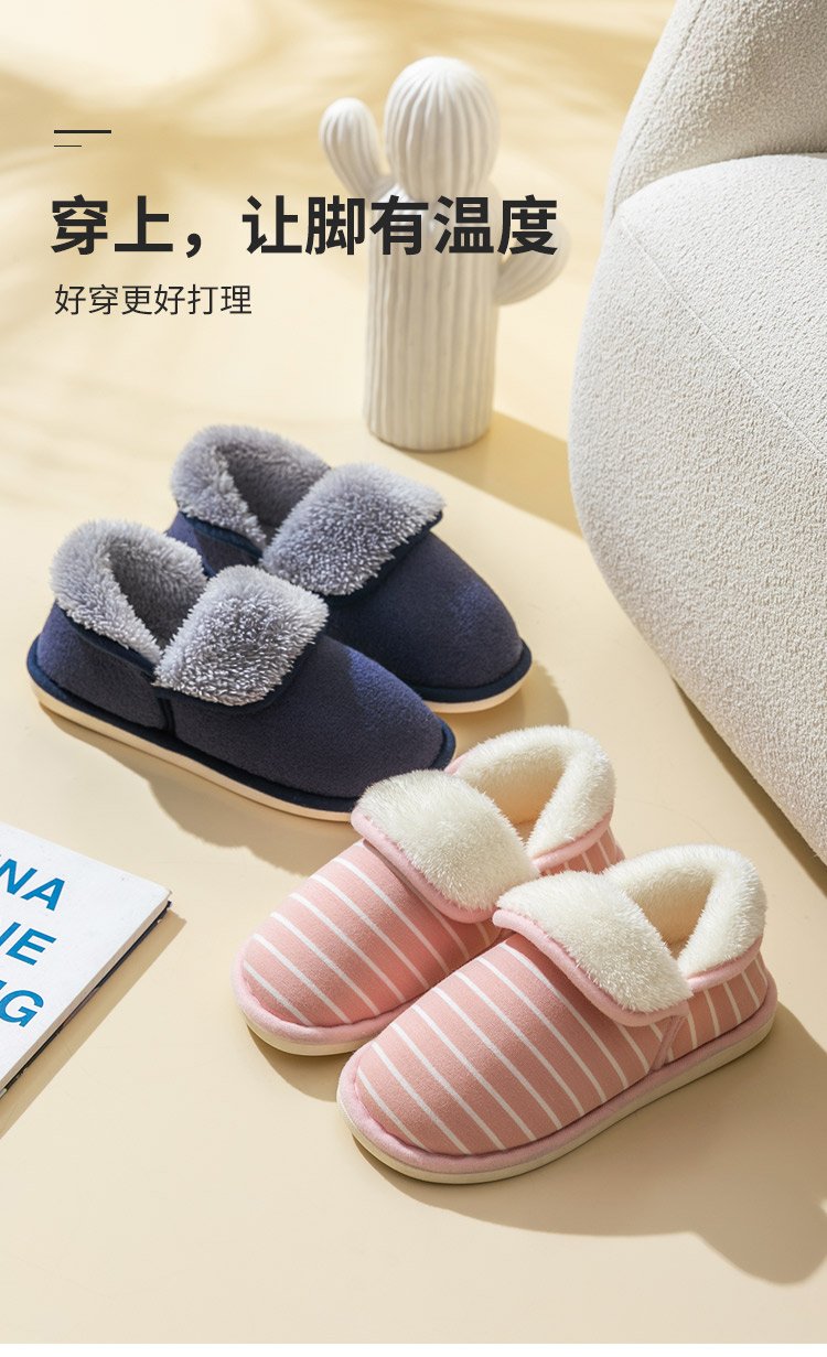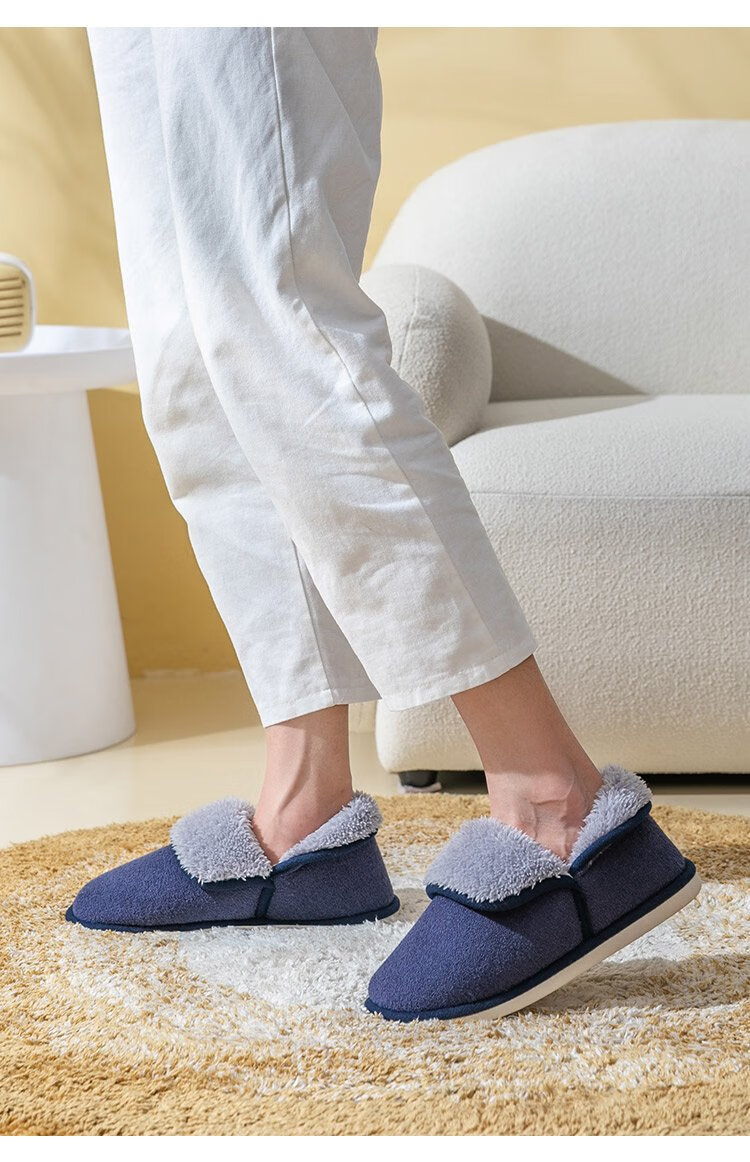 Made in Tokyo, thick soles for outer wear, flippable, plush autumn and winter warm bags and cotton slippers for men, navy blue 44-45